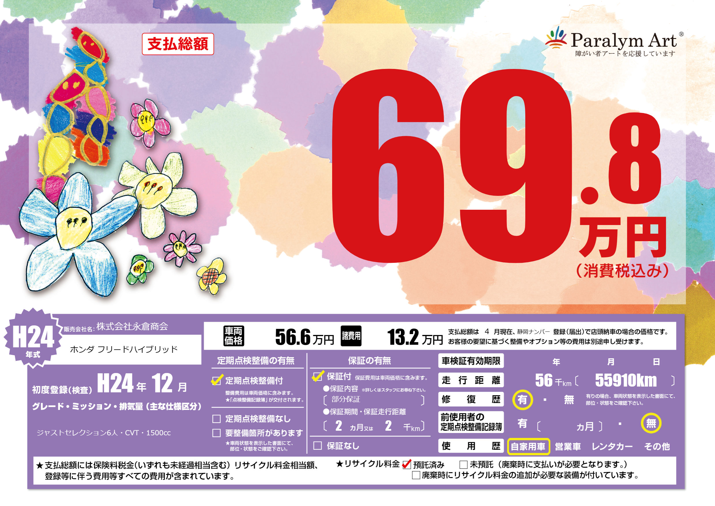 | 車名 | ホンダ フリードハイブリッド | グレード ミッション 排気量 |