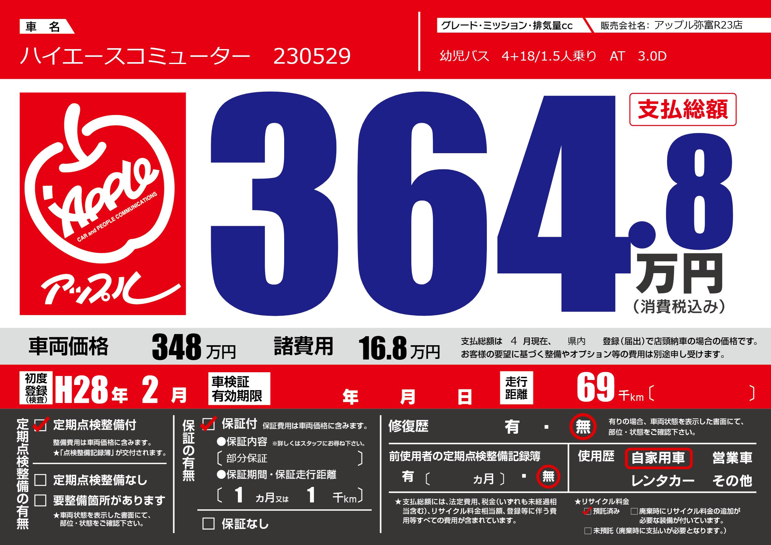 | 定期点検整備 | 定期点検整備あり | ||