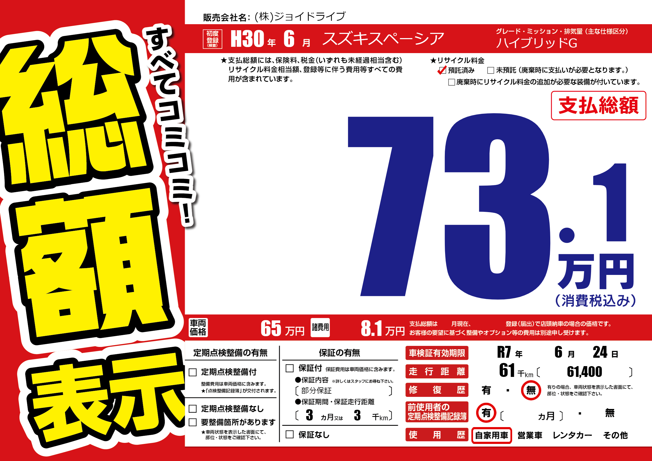 | 車検制限 | R7年 6月 24日 | ||