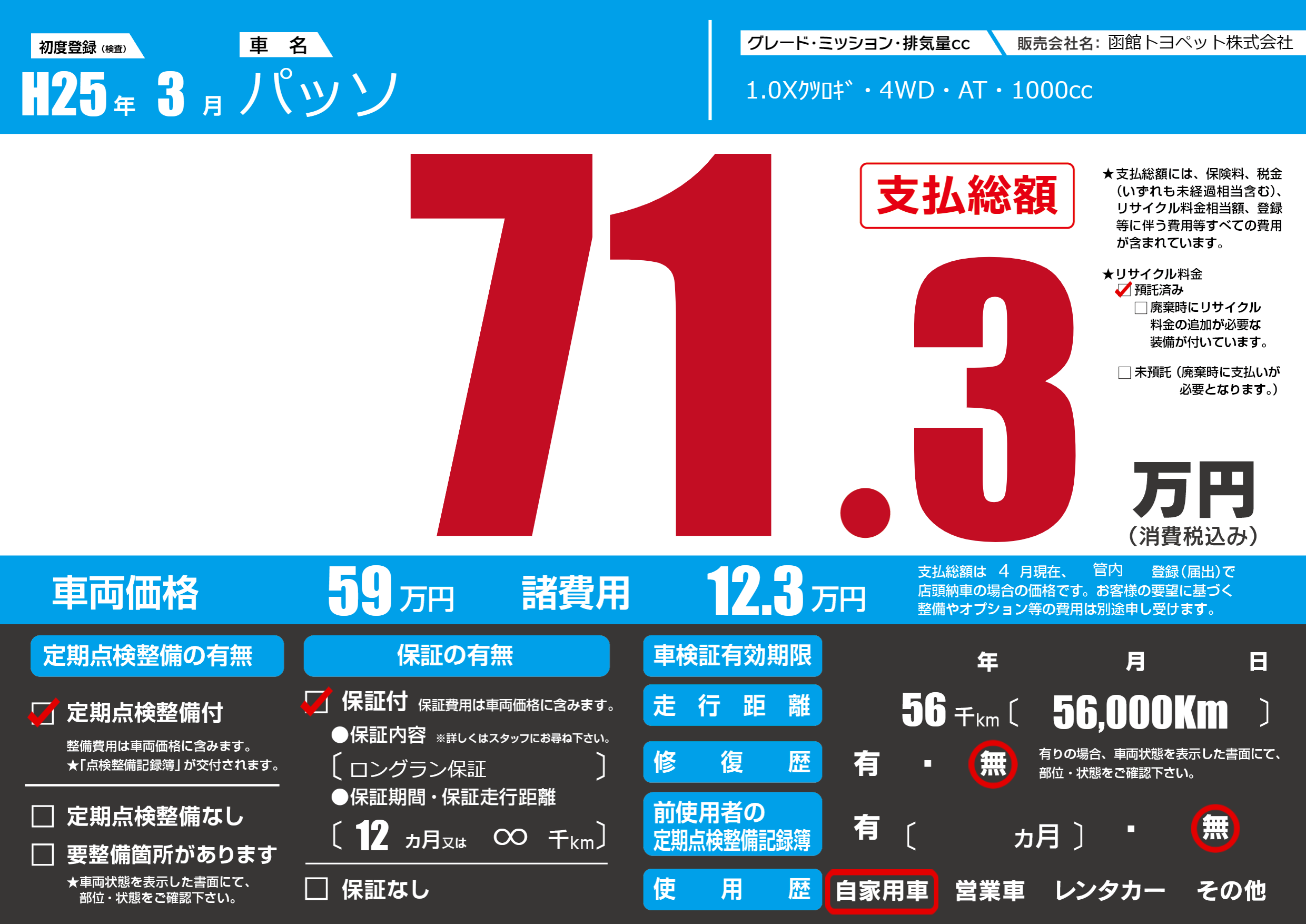 | 初年度登録 | H25年3月 | ||