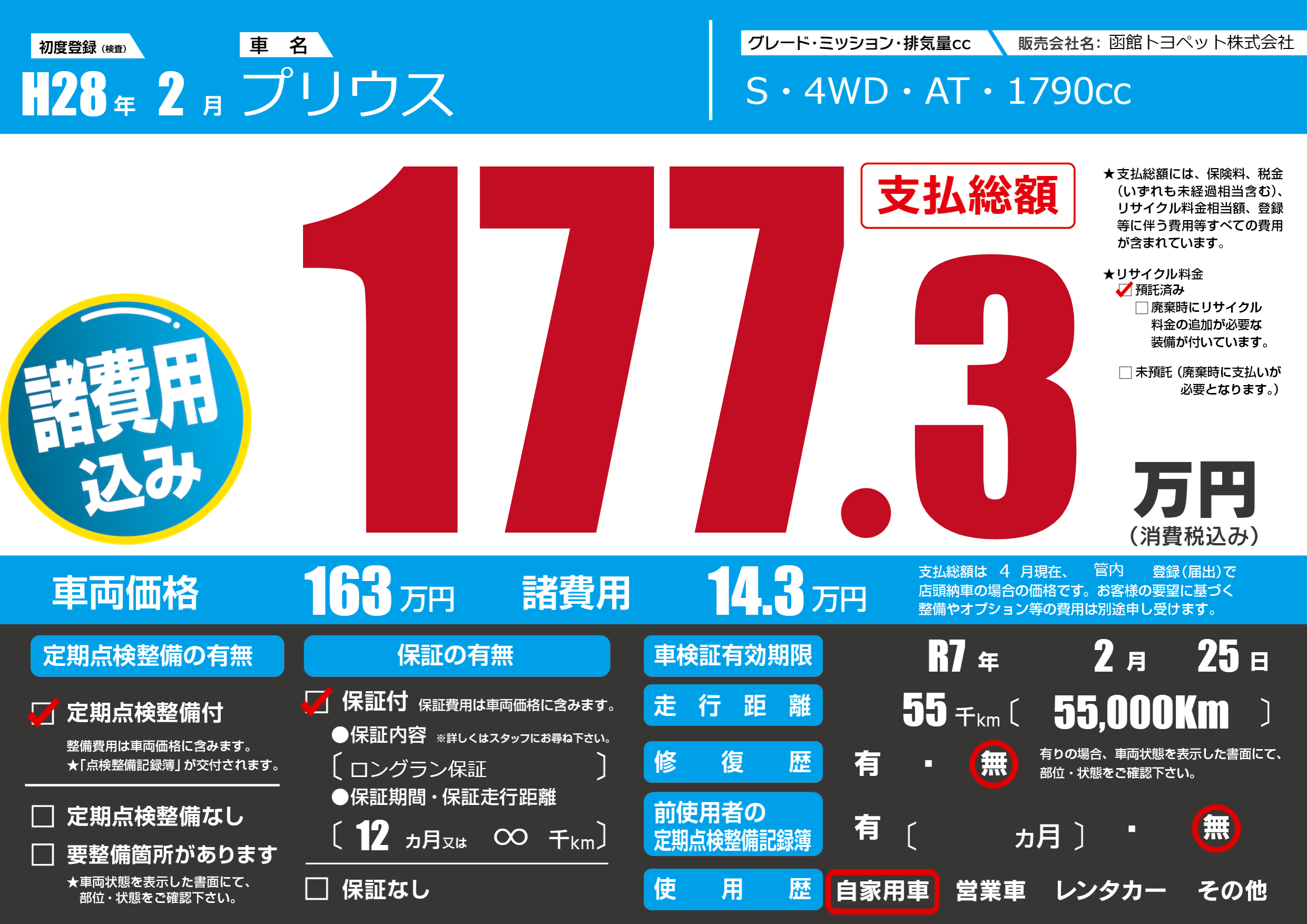 | 車名 | プリウス | グレード ミッション 排気量 |