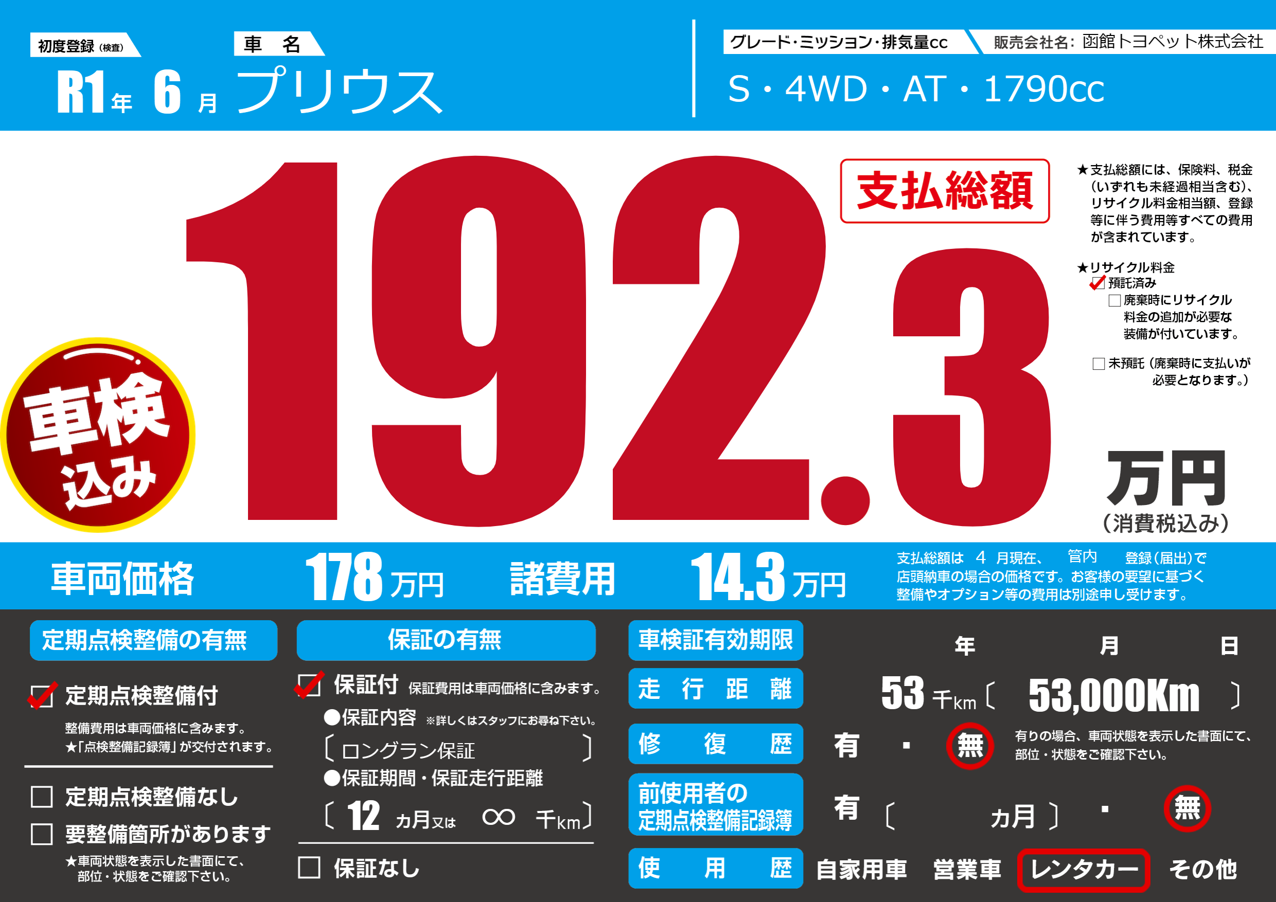 | 車名 | プリウス | グレード ミッション 排気量 |