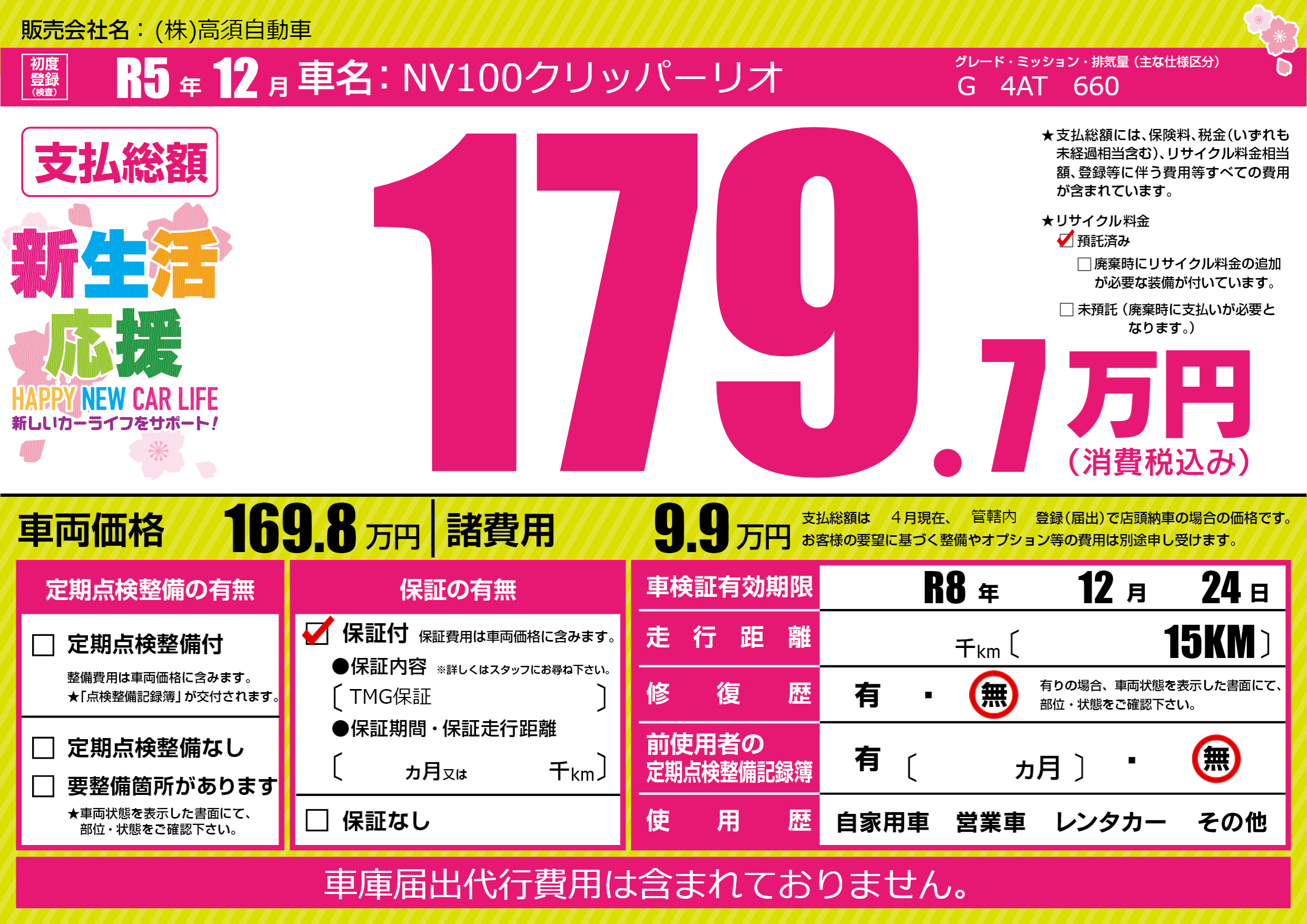 保証付き 保証内容(TMG保証) ---ヶ月または()千kmまで |