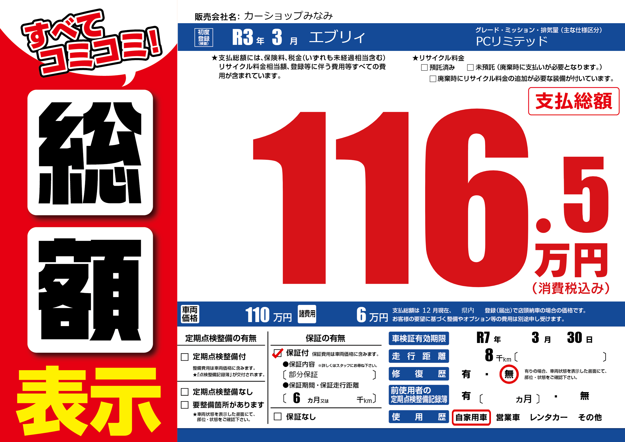 | 車検制限 | R7年 3月 30日 | ||