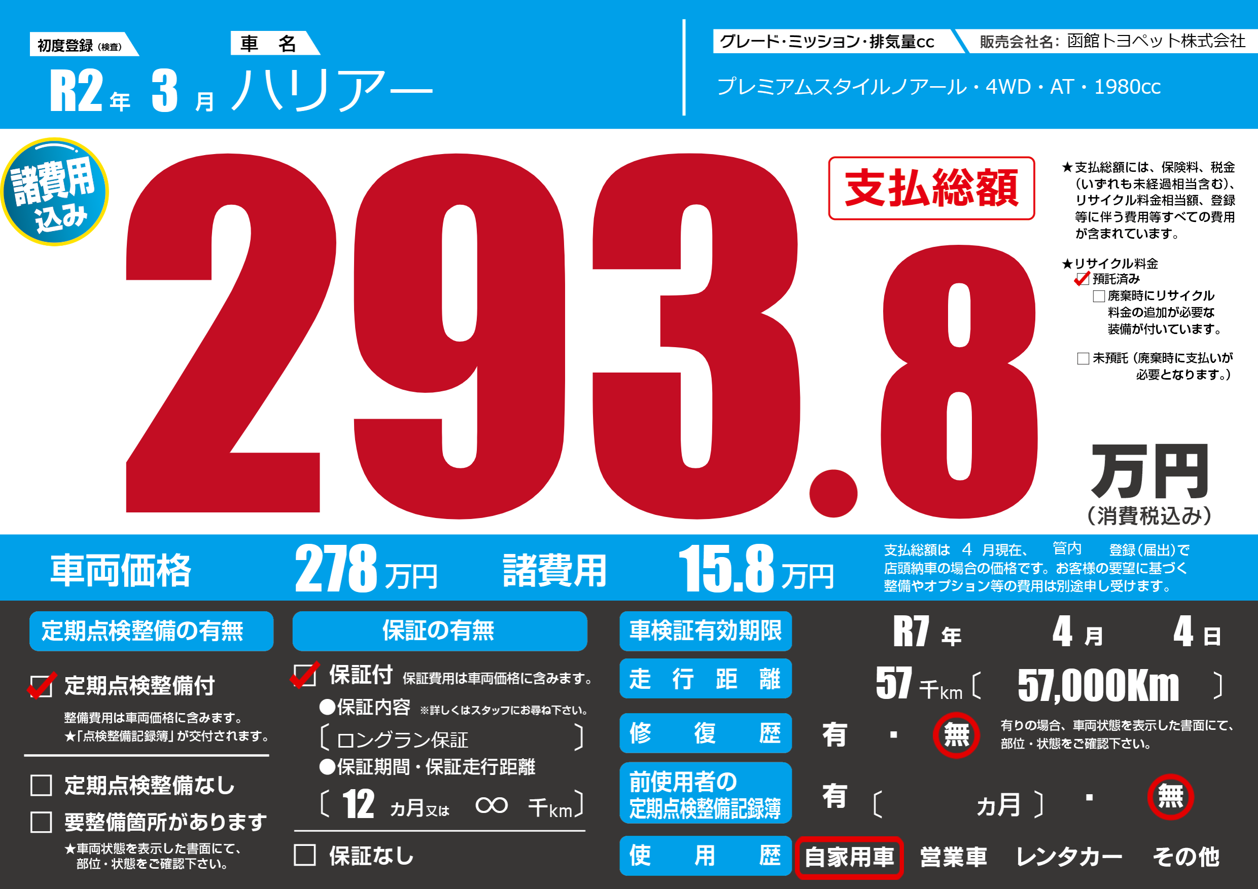 | 車名 | ハリアー | グレード ミッション 排気量 |