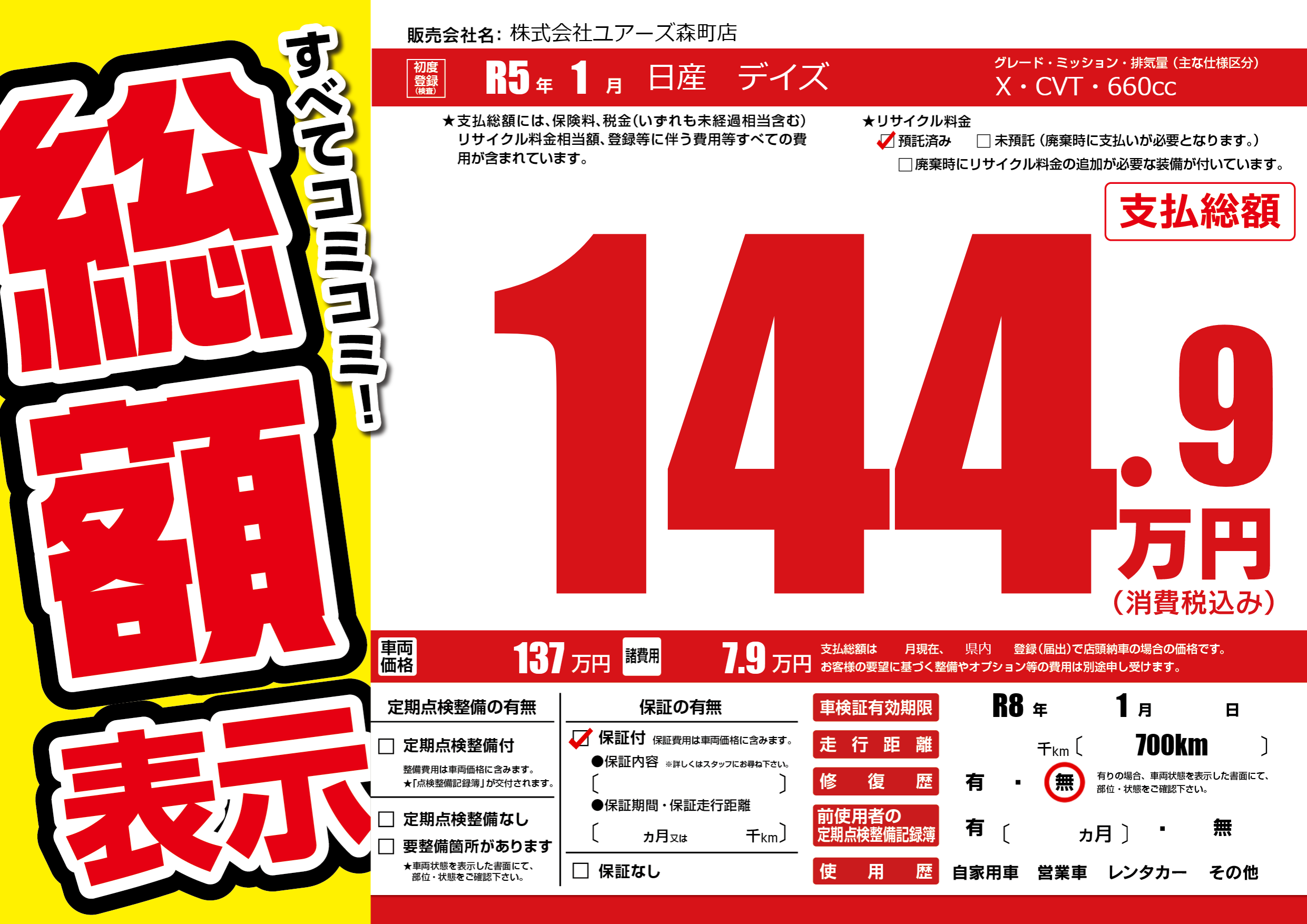 なし | 車検制限 | R8年1月---月 |