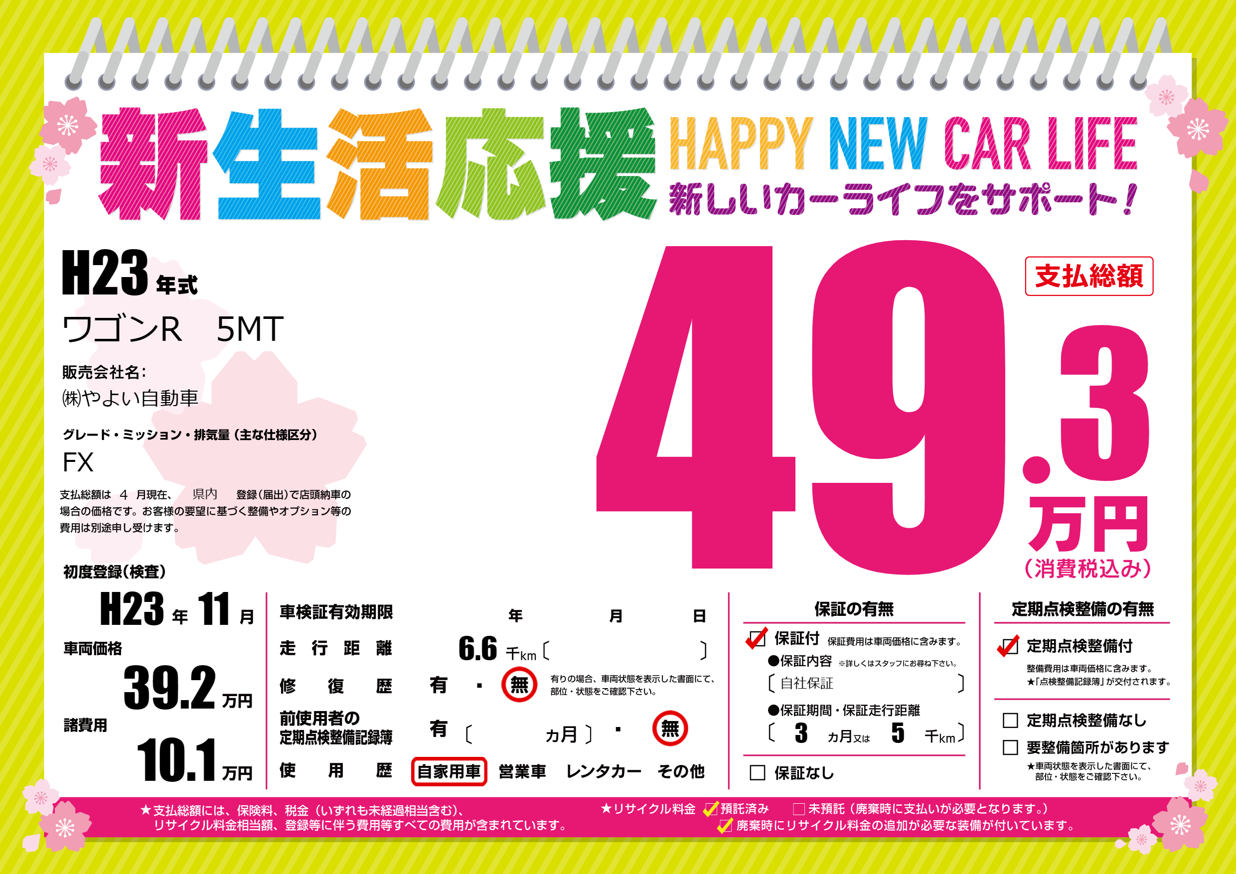 | 車名 | ワゴンR 5MT | グレード ミッション 排気量 |