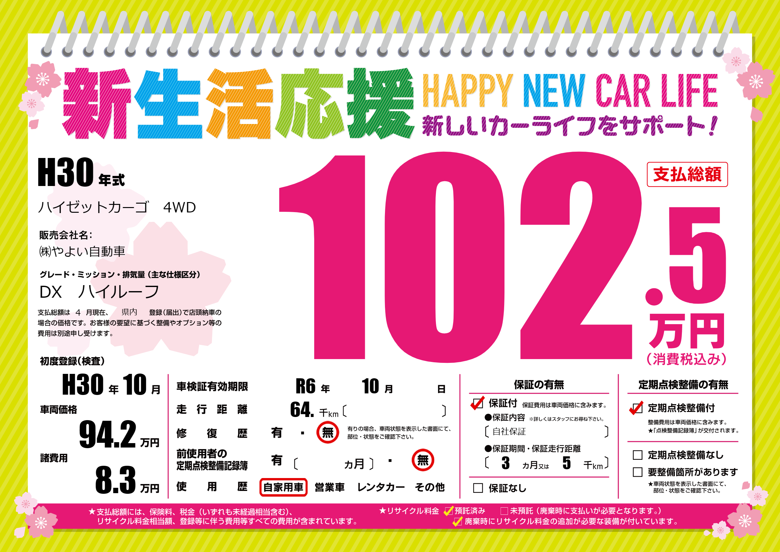 | 車名 | ハイゼットカーゴ 4WD | グレード ミッション 排気量 |