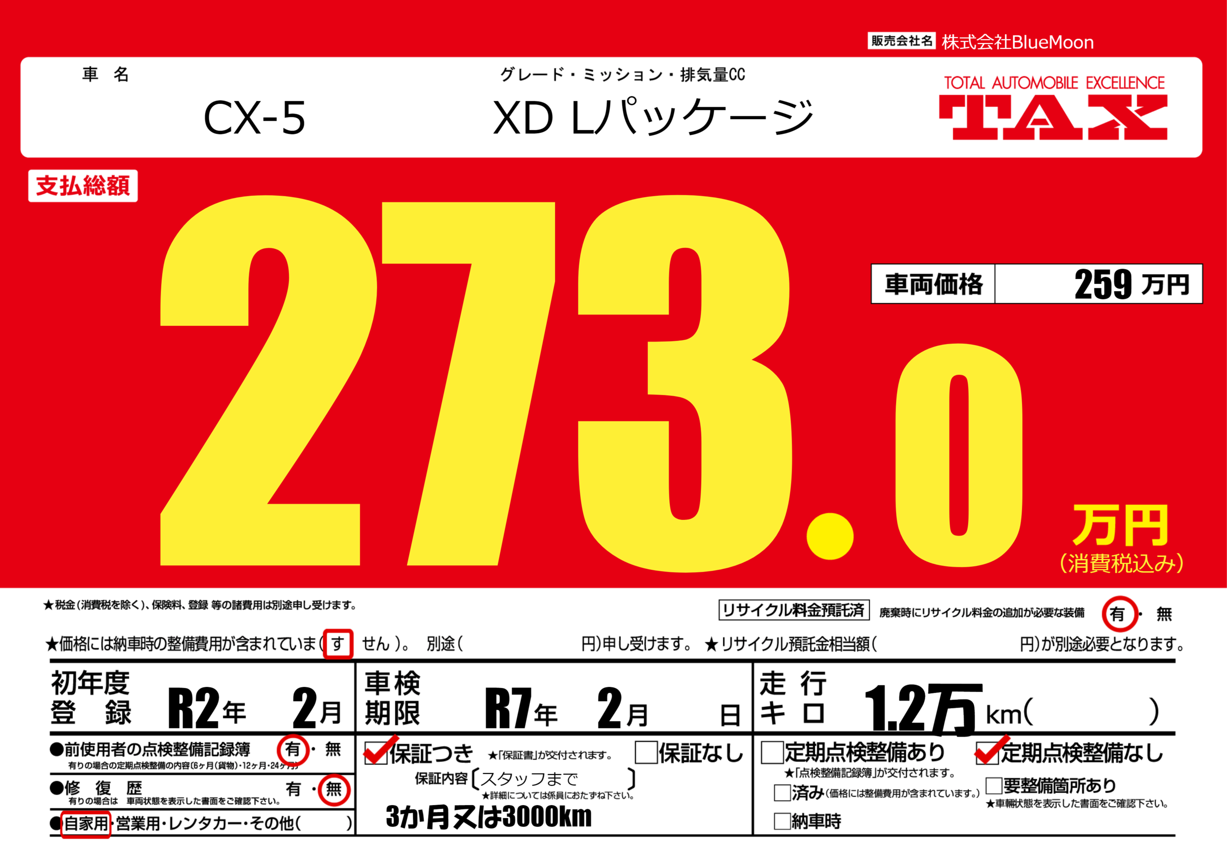 | 車名 | CX-5 | グレード ミッション 排気量 |