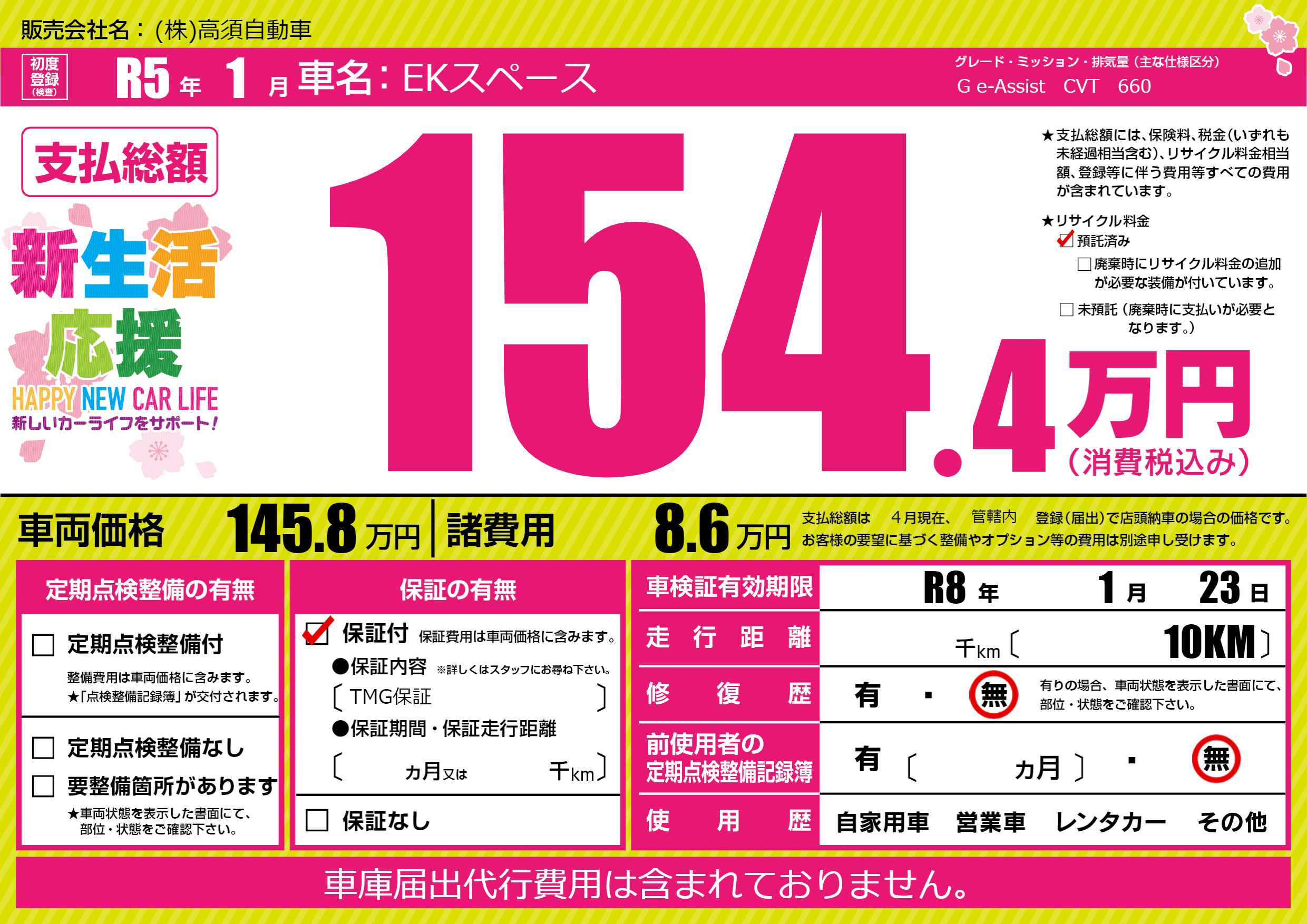 保証付き 保証内容(TMG保証) ---ヶ月または()千kmまで |