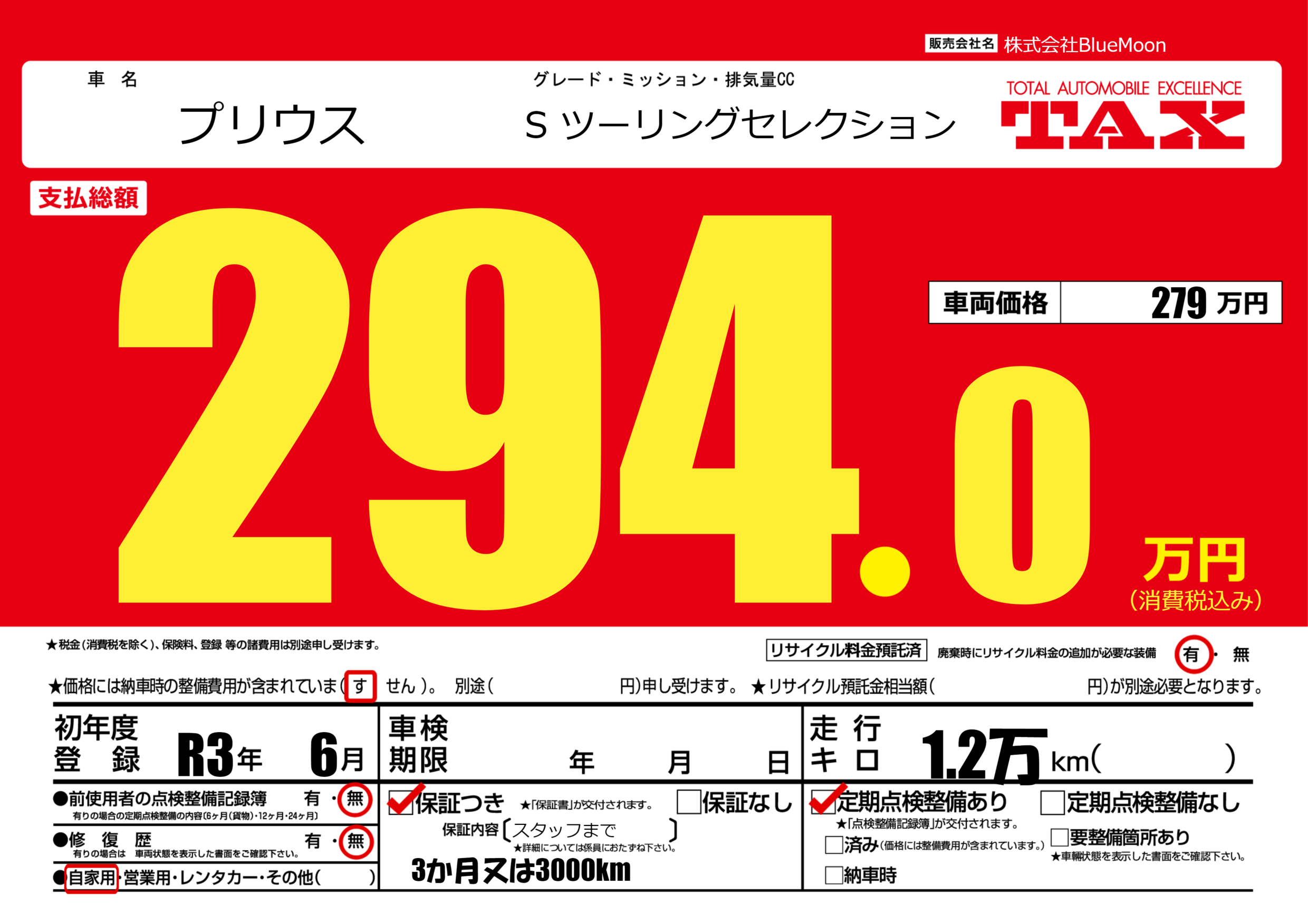 | 車名 | プリウス | グレード ミッション 排気量 |