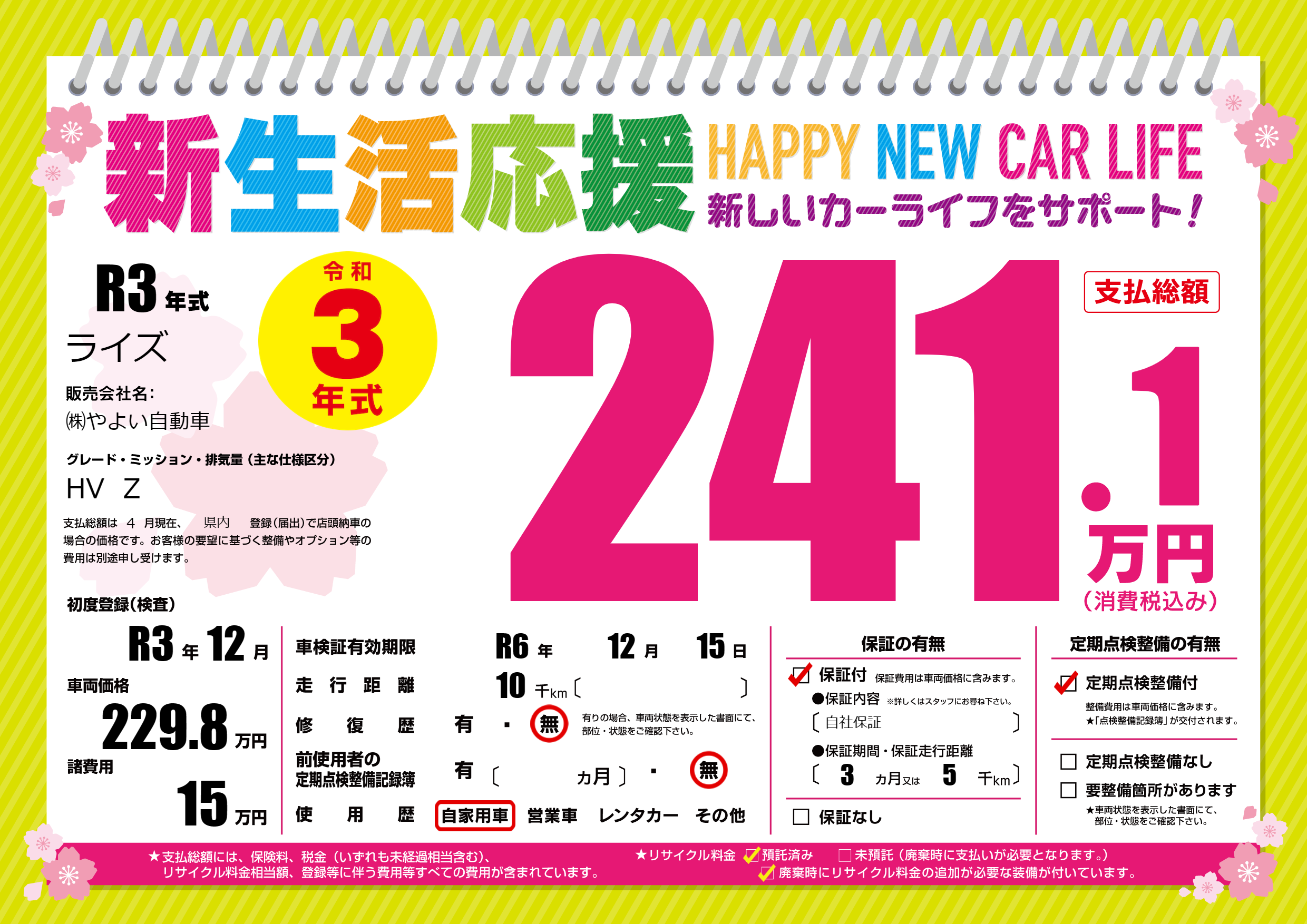 | 走行キロ | 1万km | 初年度登録 | R3年12月 |