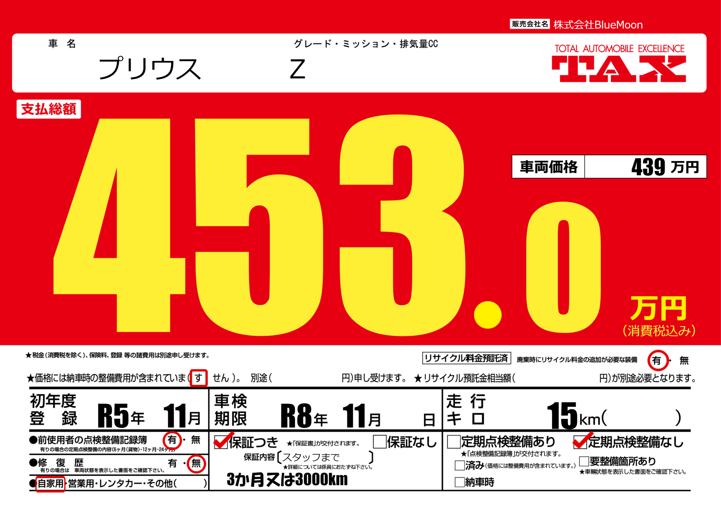 | 走行キロ | 1.5万km | 初年度登録 | R5年11月 |