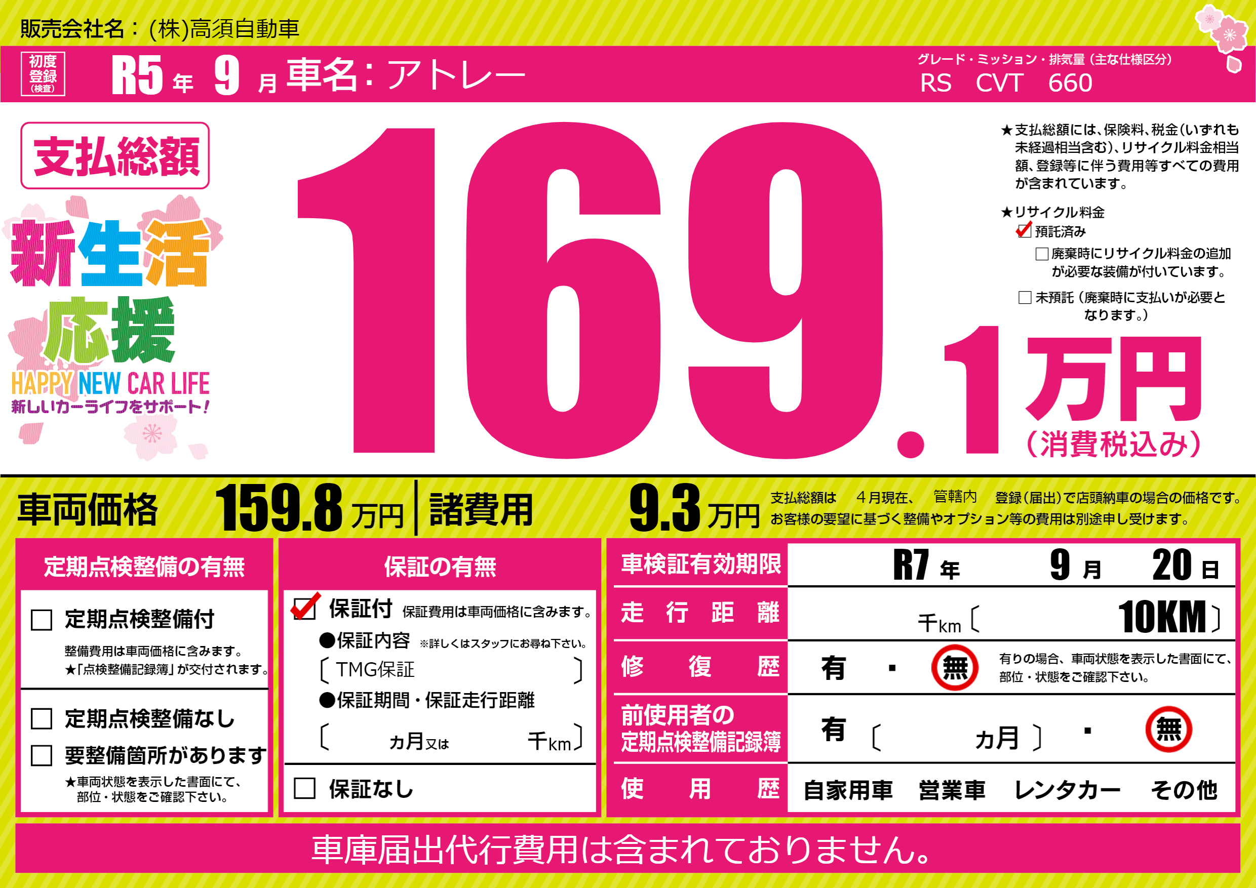 なし | 車検制限 | R7年9月20月 |