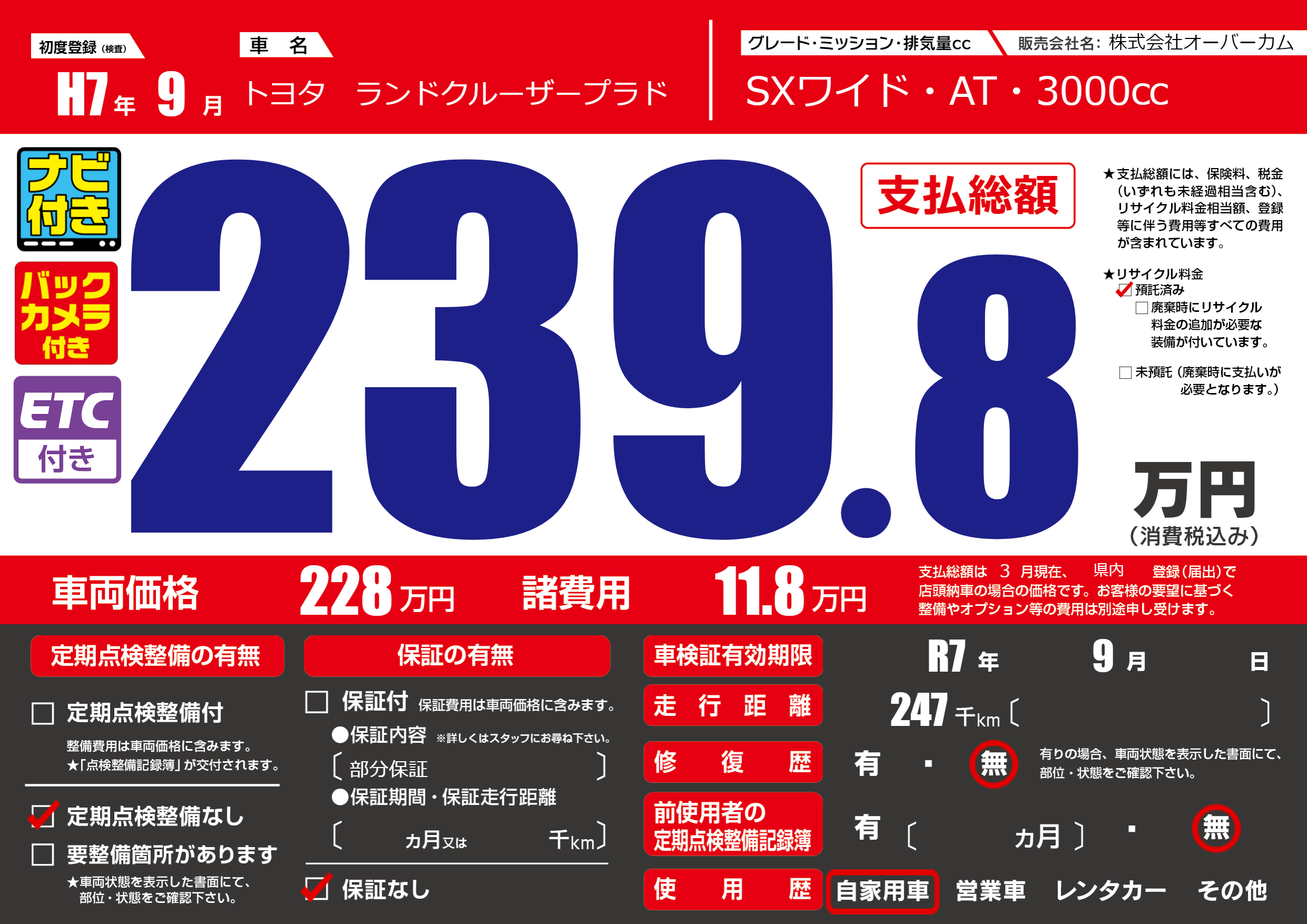 | 車検制限 | R7年 9月 - 日 | ||