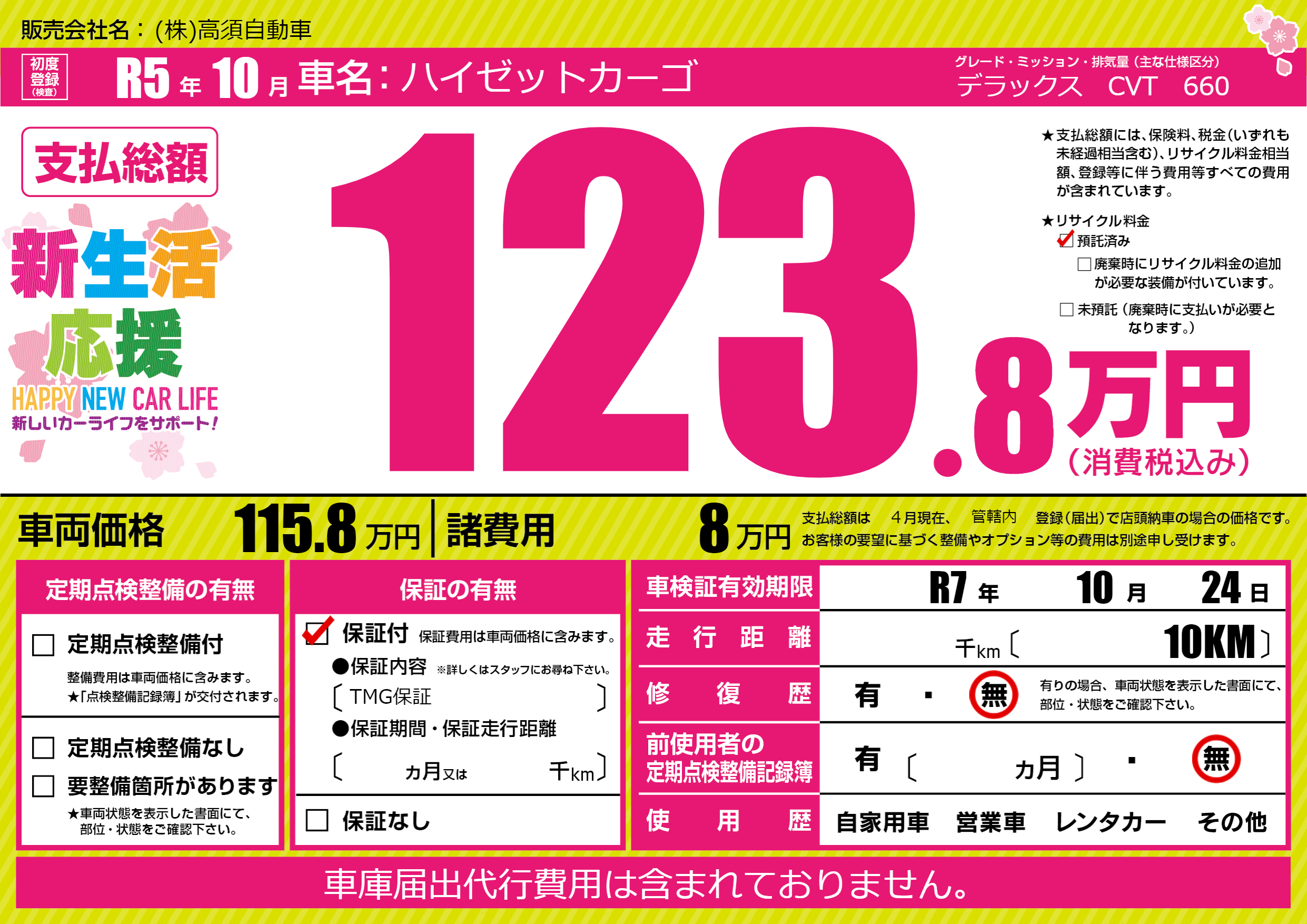 なし | 車検制限 | R7年10月24月 |