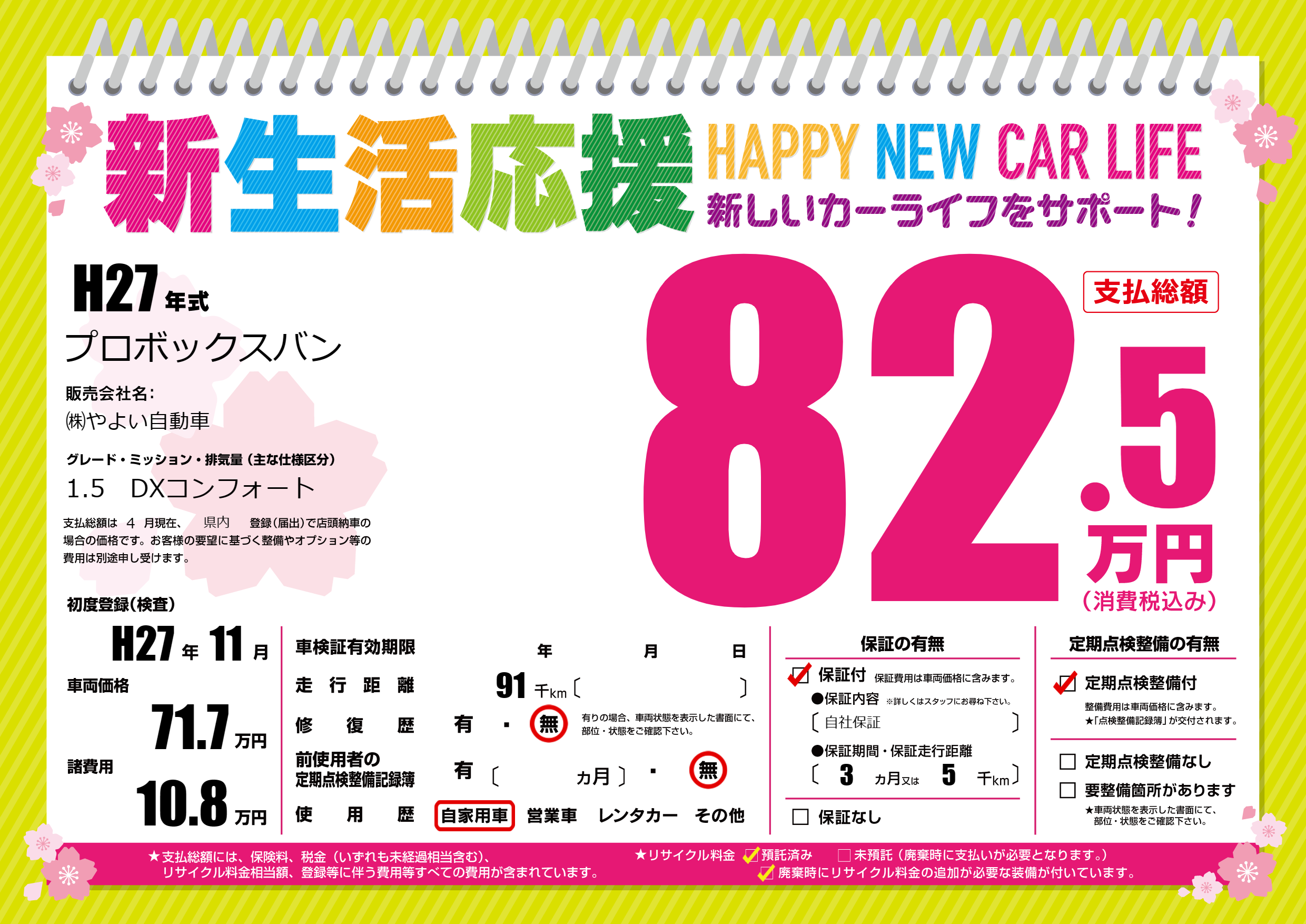| 定期点検整備 | 定期点検整備あり | ||