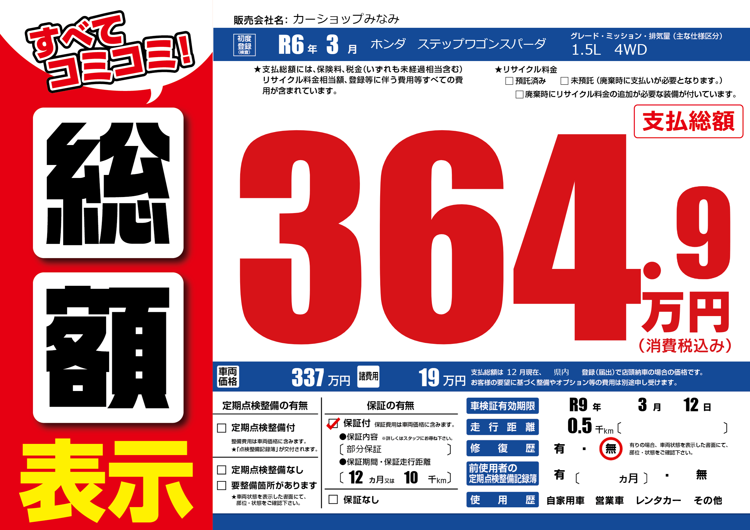 保証付き 保証内容(部分保証) 12ヶ月または(10)千kmまで |