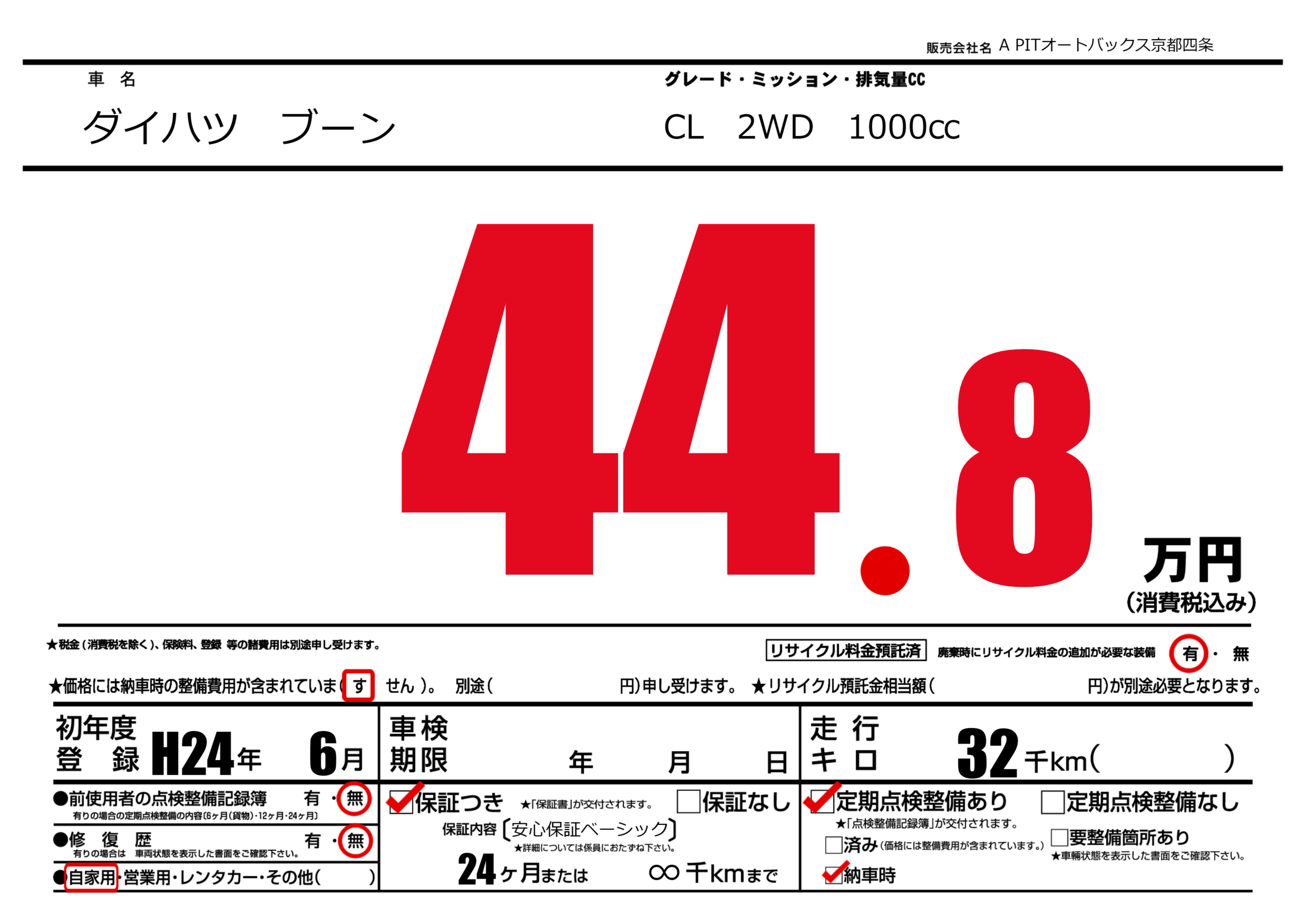 | 車名 | ダイハツ ブーン | グレード ミッション 排気量 |