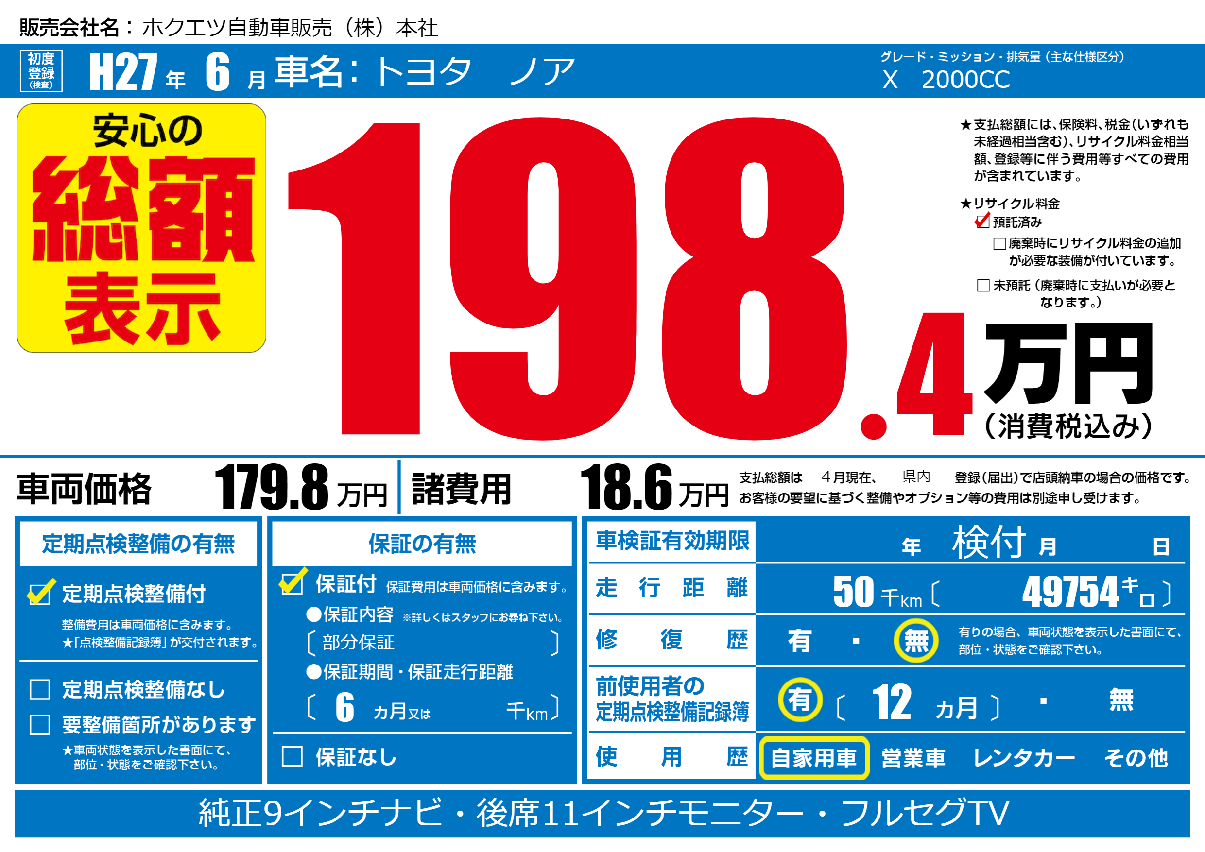 | 定期点検整備 | 定期点検整備あり | ||