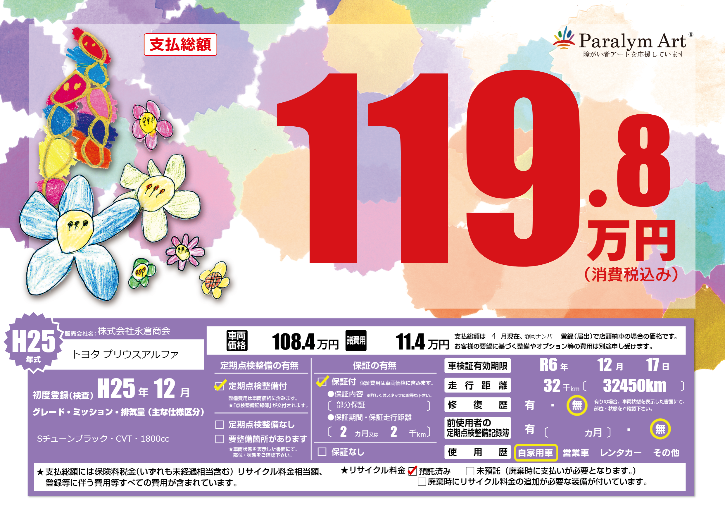 | 走行キロ | 3.2万km | 初年度登録 | H25年12月 |