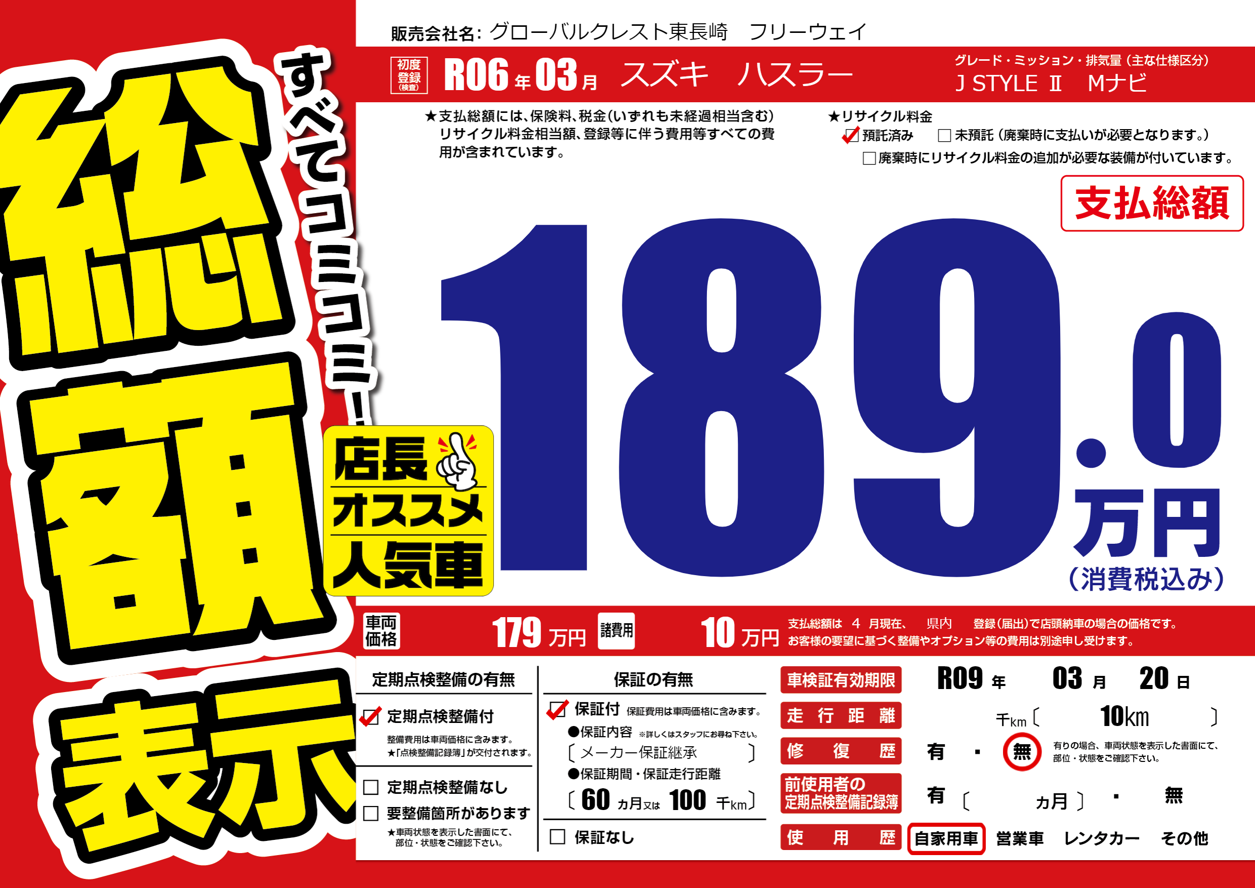 | 車検制限 | R09年 03月 20日 | ||