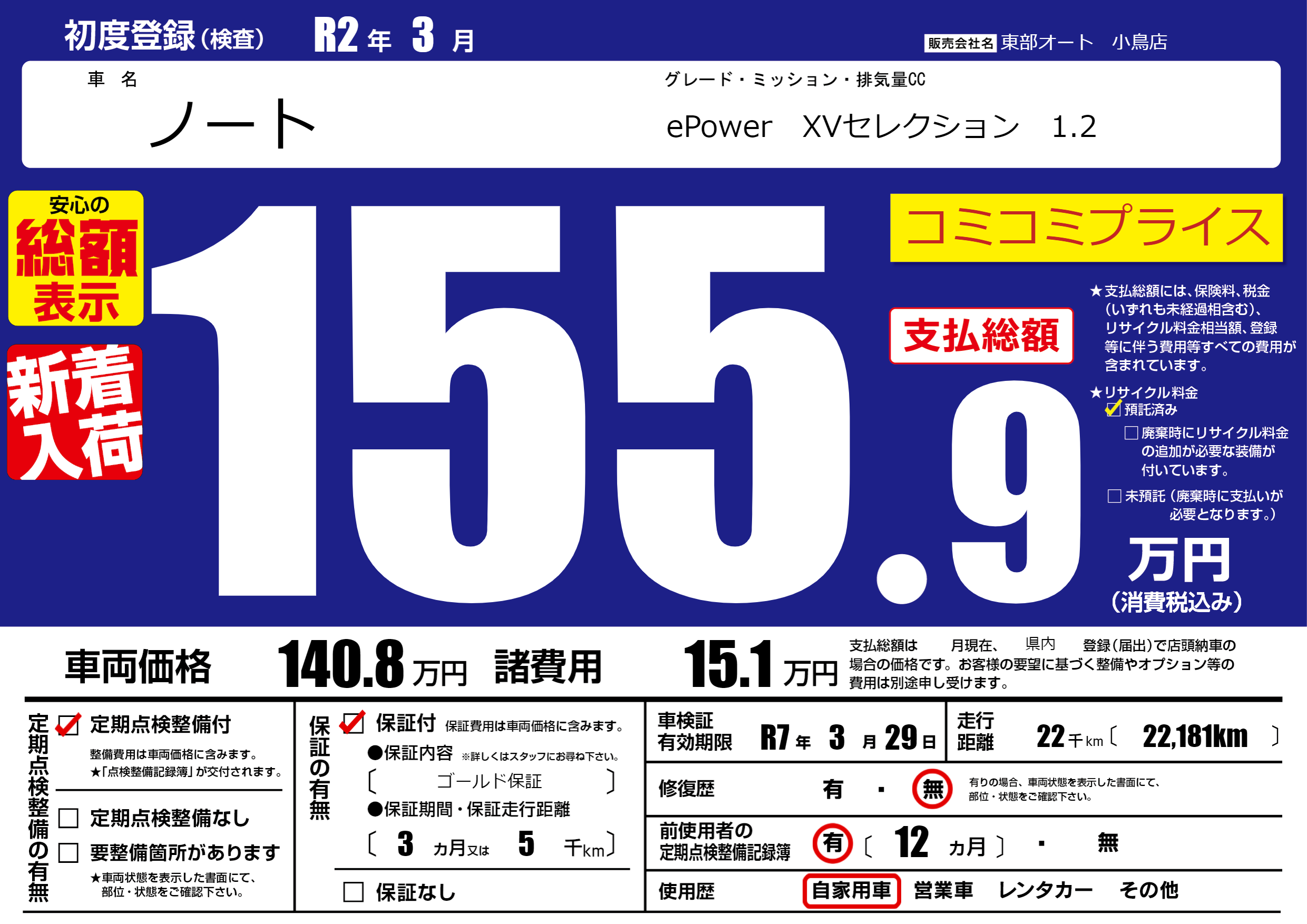保証付き 保証内容( ゴールド保証) 3ヶ月または5千km |
