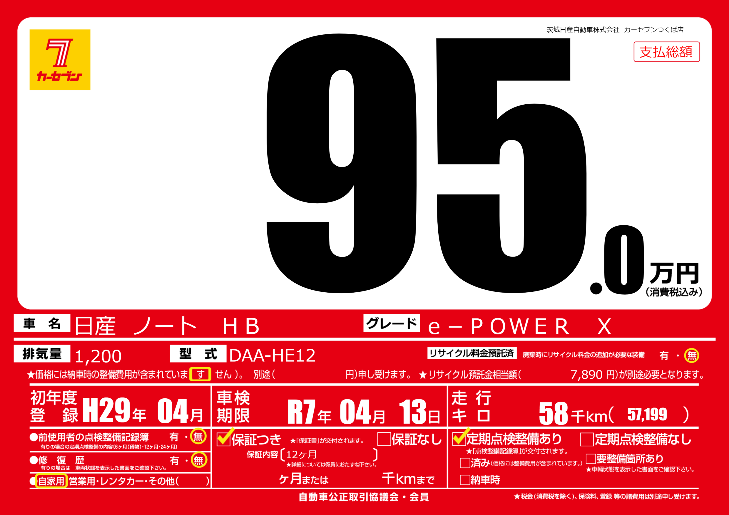 | 車名 | 日産 ノート HB | グレード ミッション 排気量 |