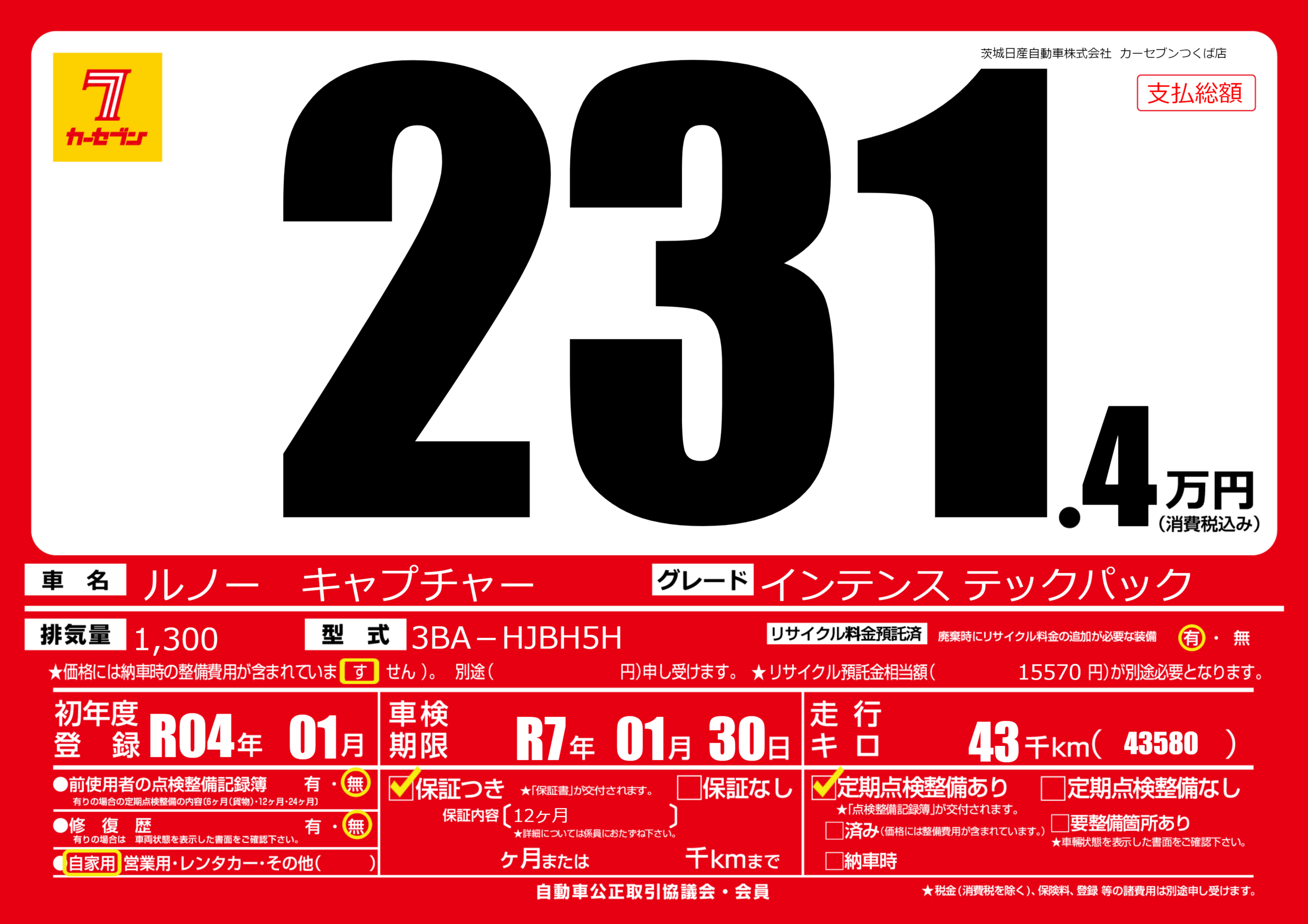 あり | 車検制限 | R7年01月30月 |