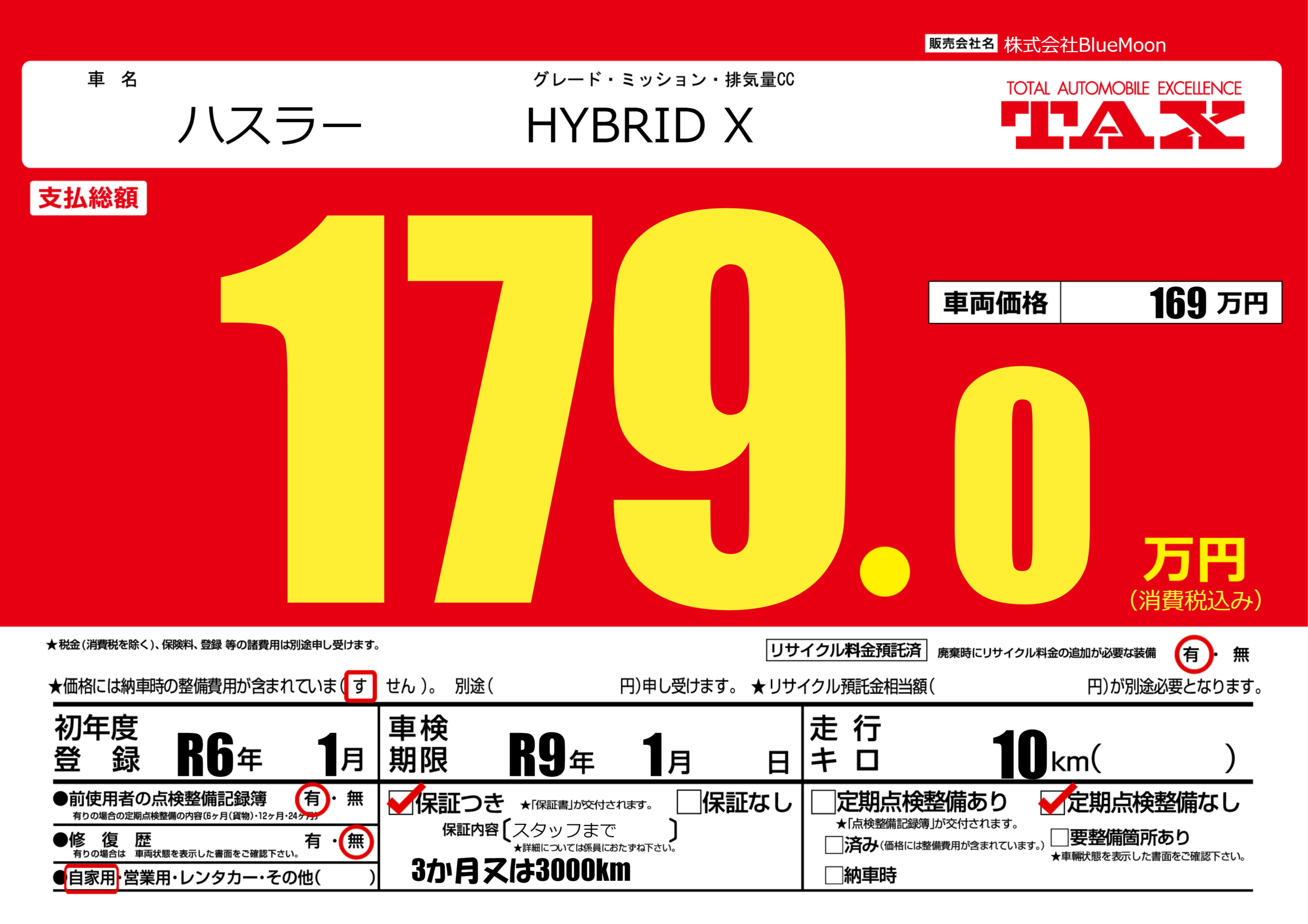 | 車名 | ハスラー | グレード ミッション 排気量 |