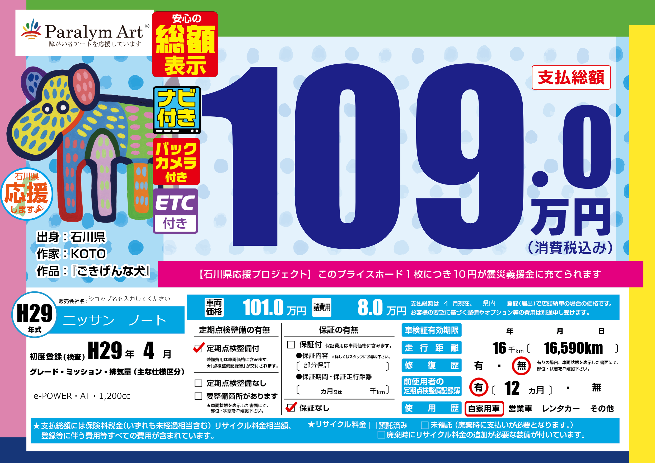 | 車名 | ニッサン ノート | グレード ミッション 排気量 |