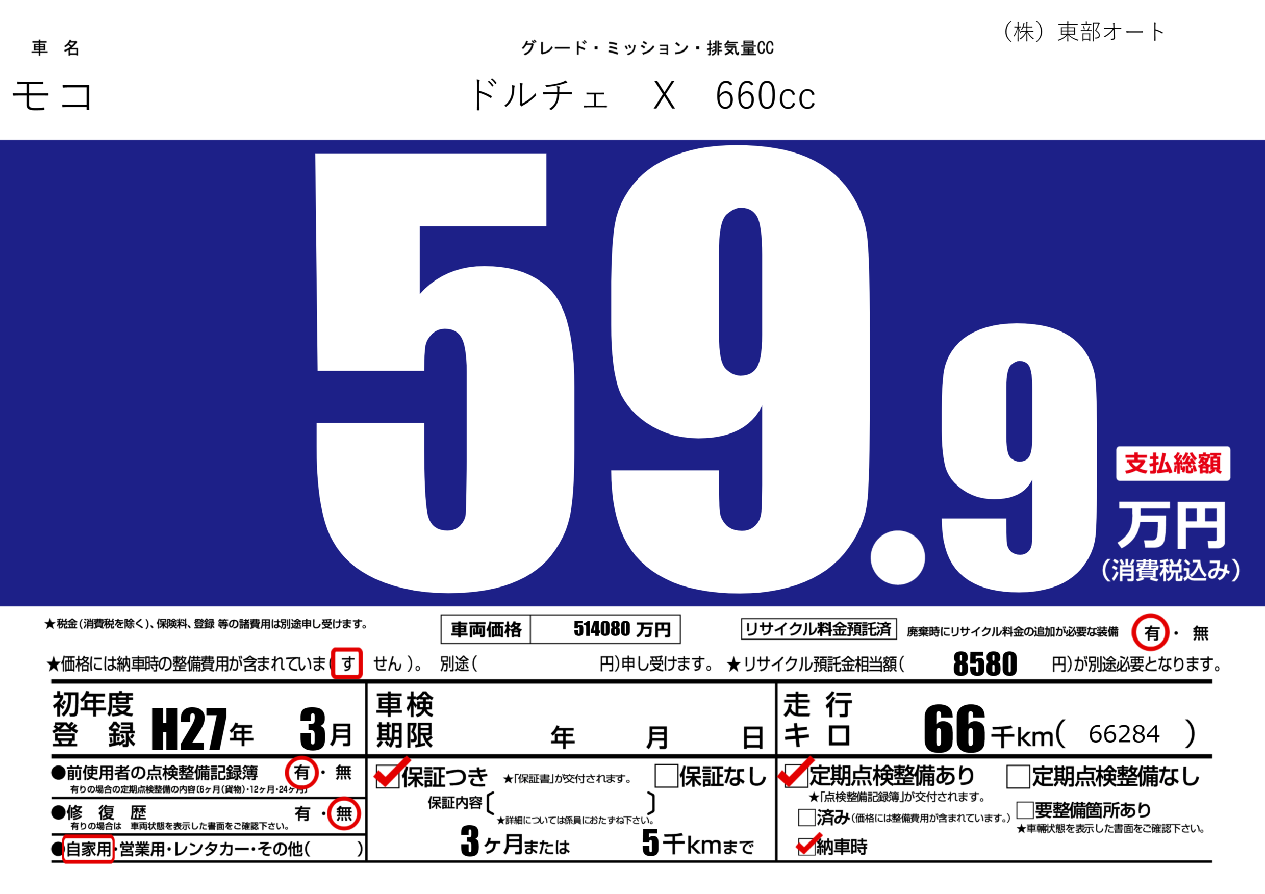 | 定期点検整備 | 定期点検整備あり 納車時あり | ||