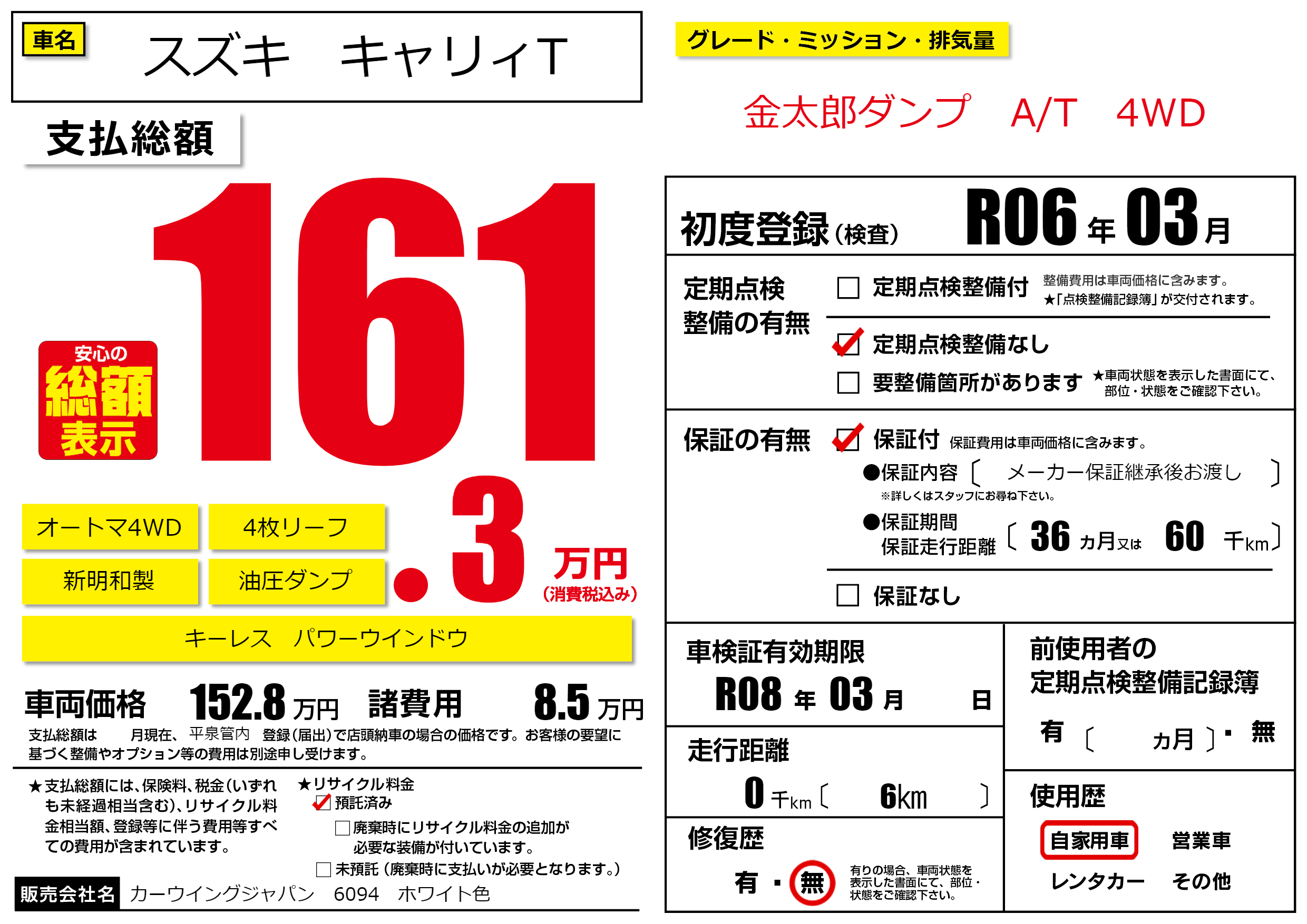 | 走行キロ | - | 初年度登録 | R06年03月 |