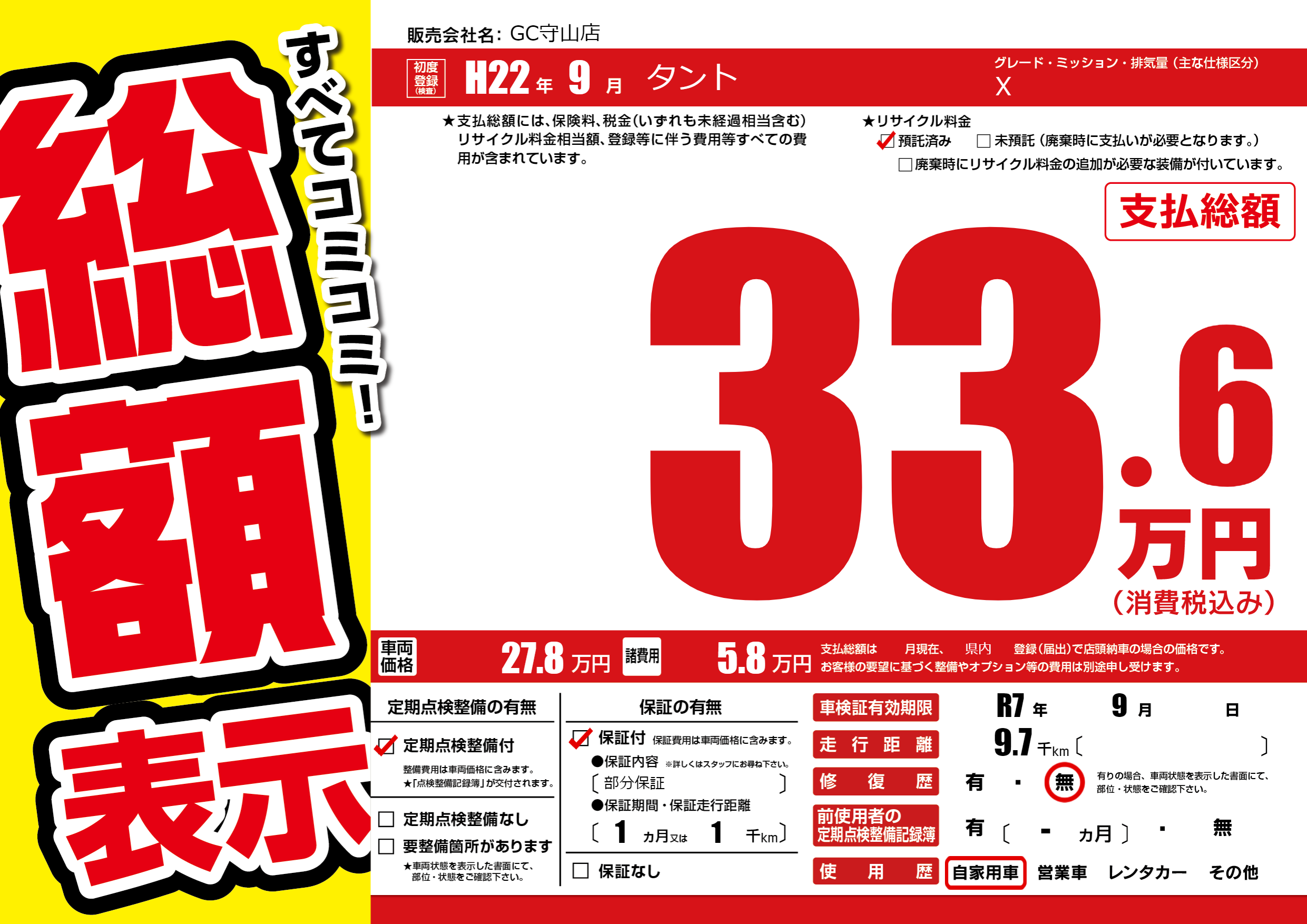 | 車検制限 | R7年 9月 - 日 | ||