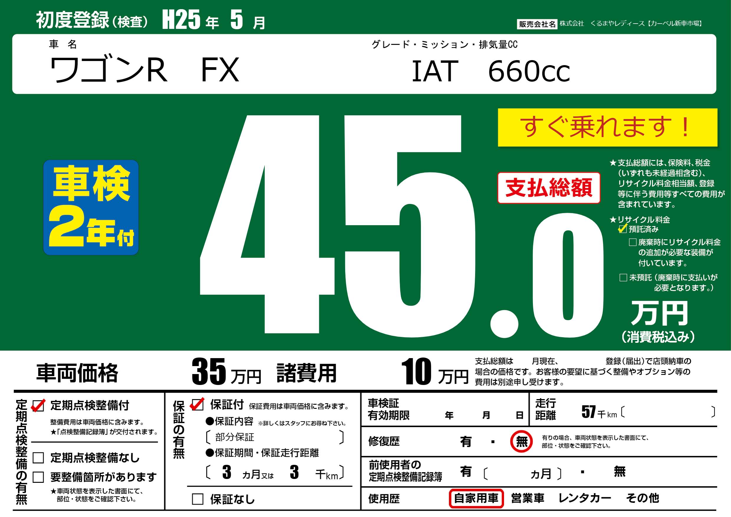 | 車名 | ワゴンR FX | グレード ミッション 排気量 |