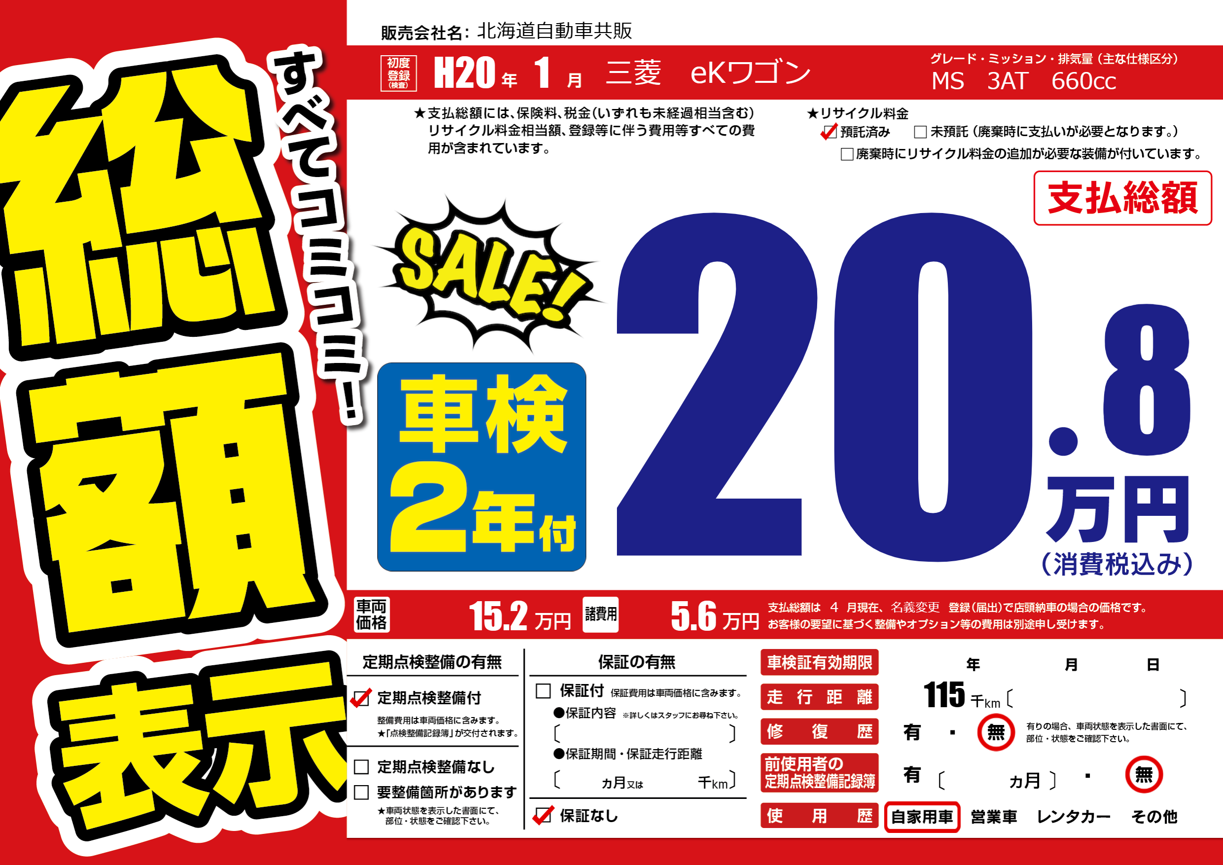 | 走行キロ | 11.5万km | 初年度登録 | H20年1月 |