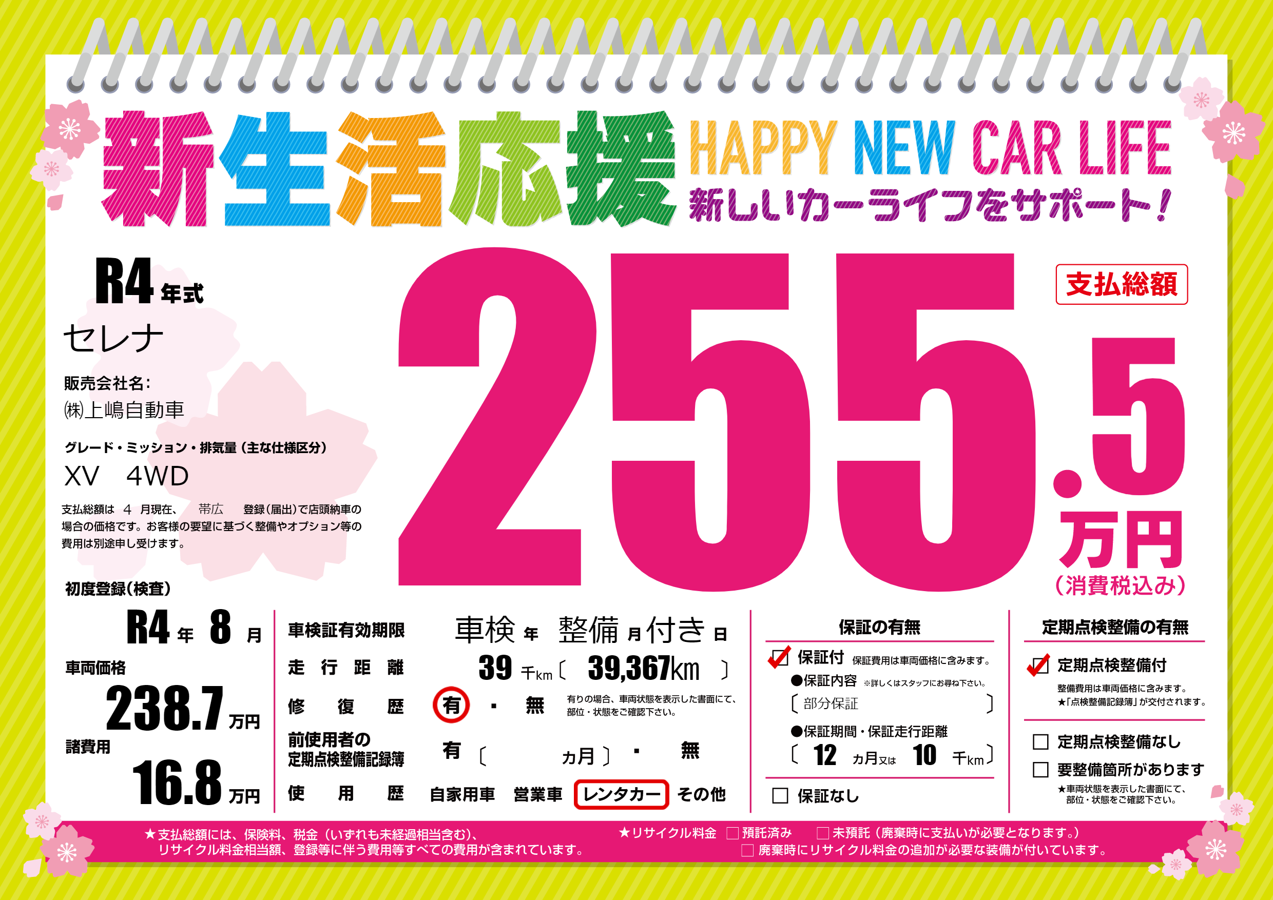 | 定期点検整備 | 定期点検整備あり | ||