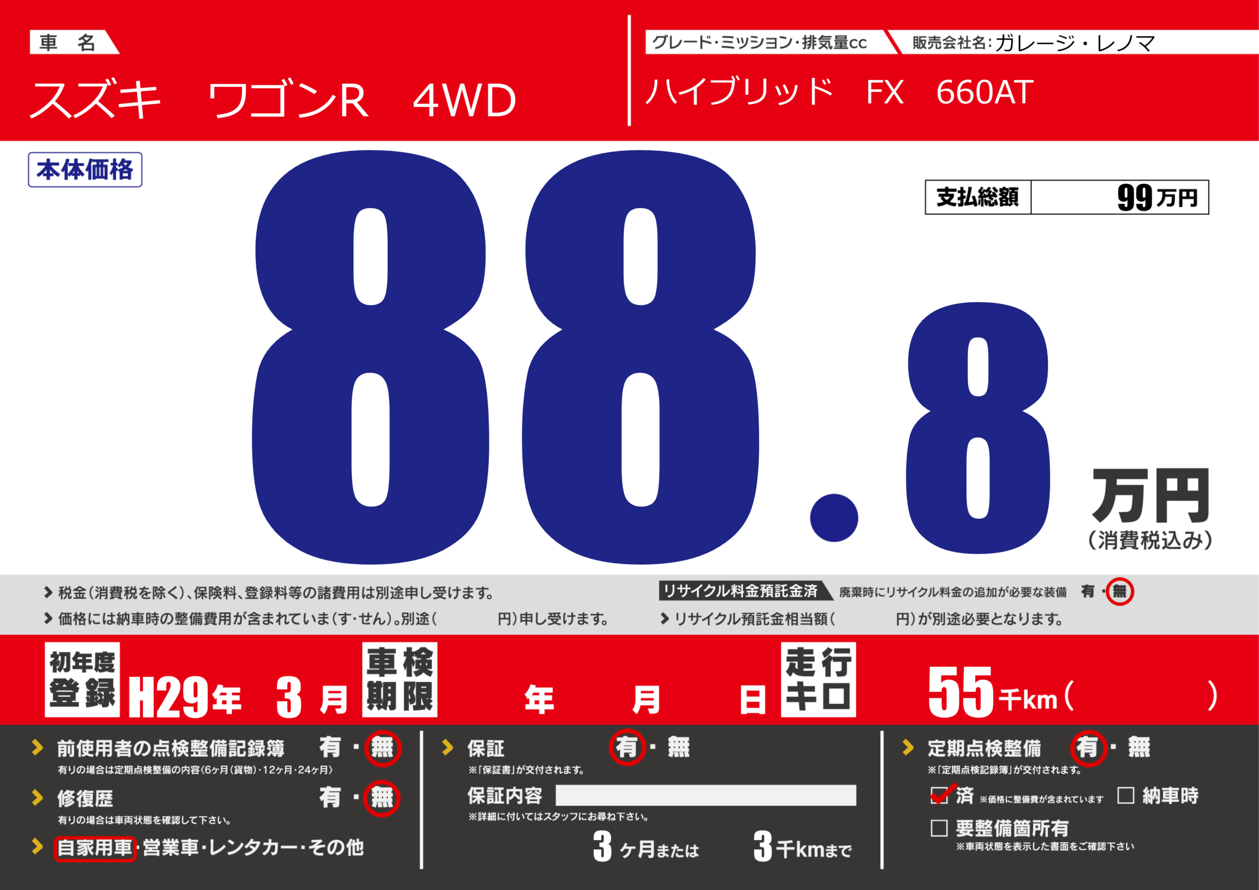 | 定期点検整備 | 定期点検整備あり 定期点検整備済み | ||