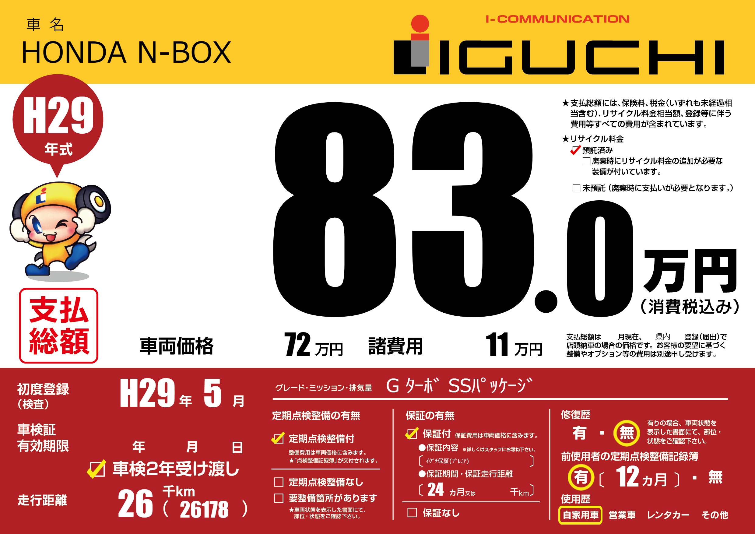 保証付き 保証内容(イグチ保証(プレミア)) 24ヶ月または千km |