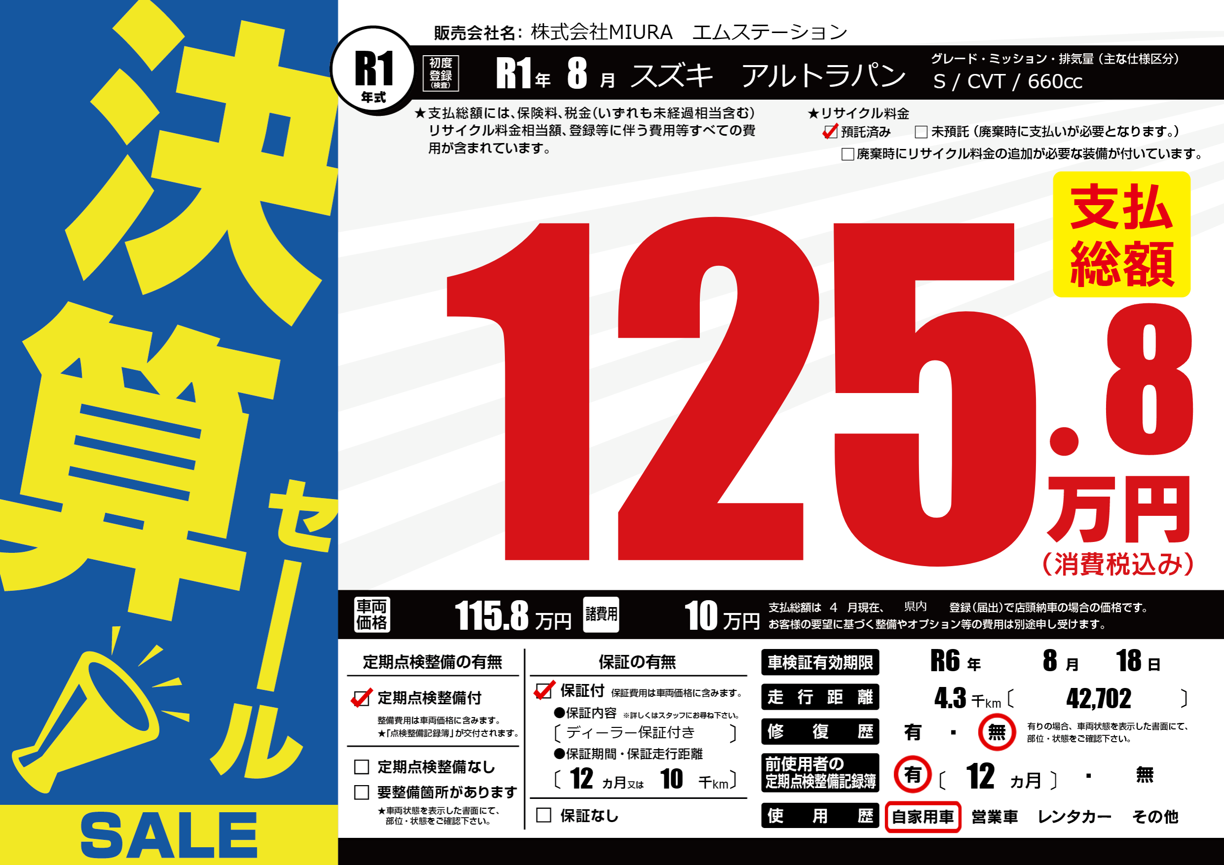 なし | 車検制限 | R6年8月18月 |