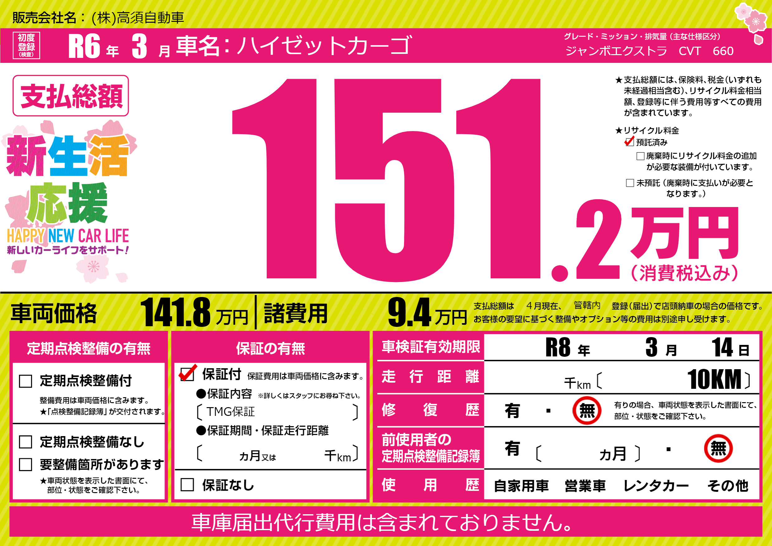 なし | 車検制限 | R8年3月14月 |