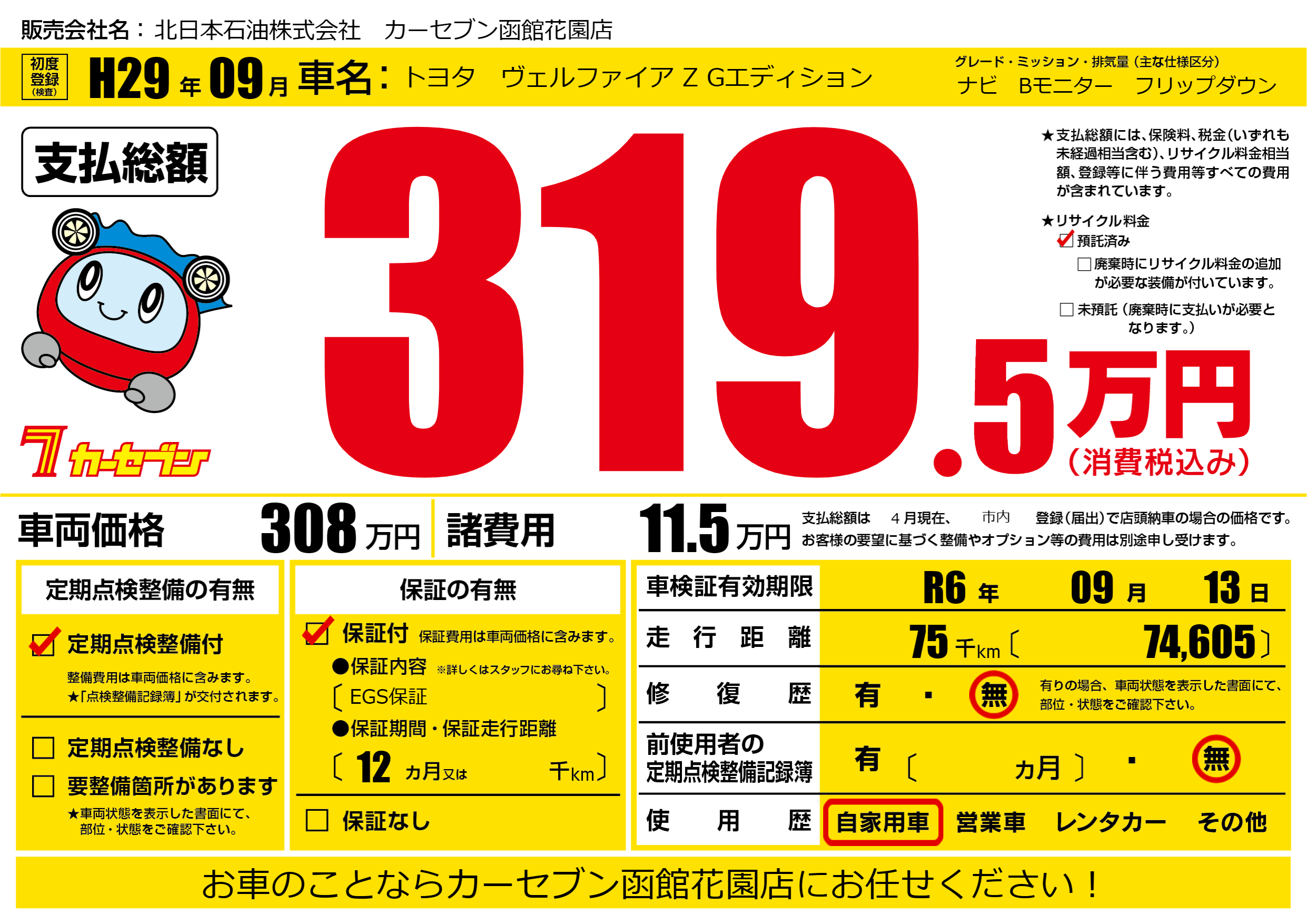 | 走行キロ | 7.5万km | ||