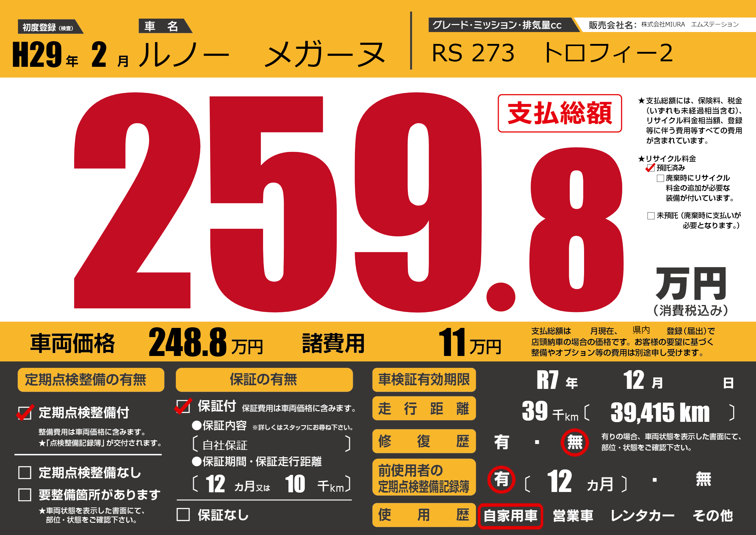 定期点検整備 | 定期点検整備あり |