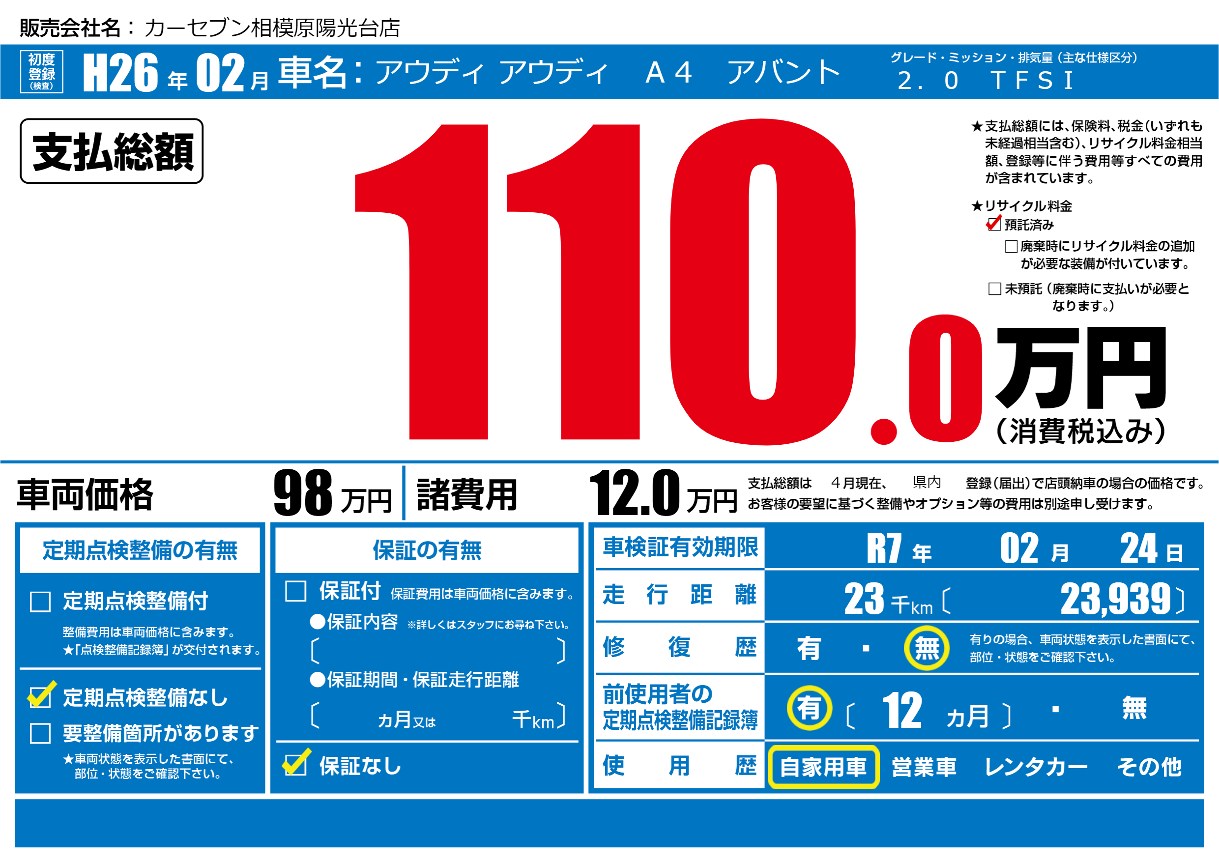 | 車検制限 | R7年 02月 24日 | ||