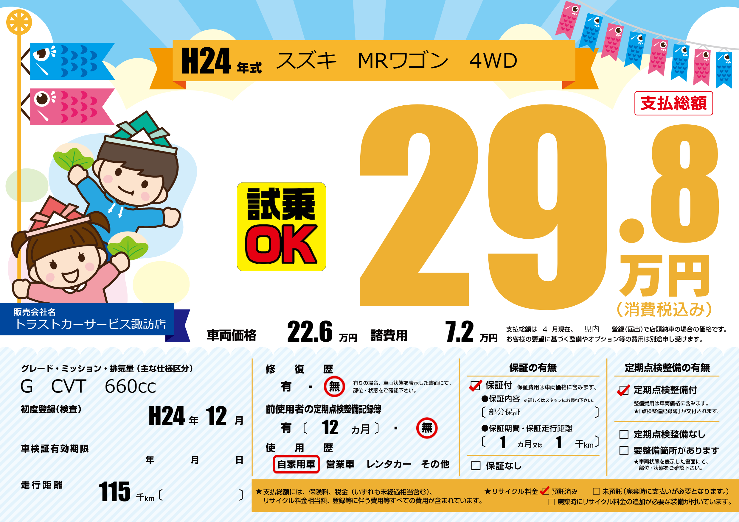 | 車名 | スズキ MRワゴン 4WD | グレード ミッション 排気量 |