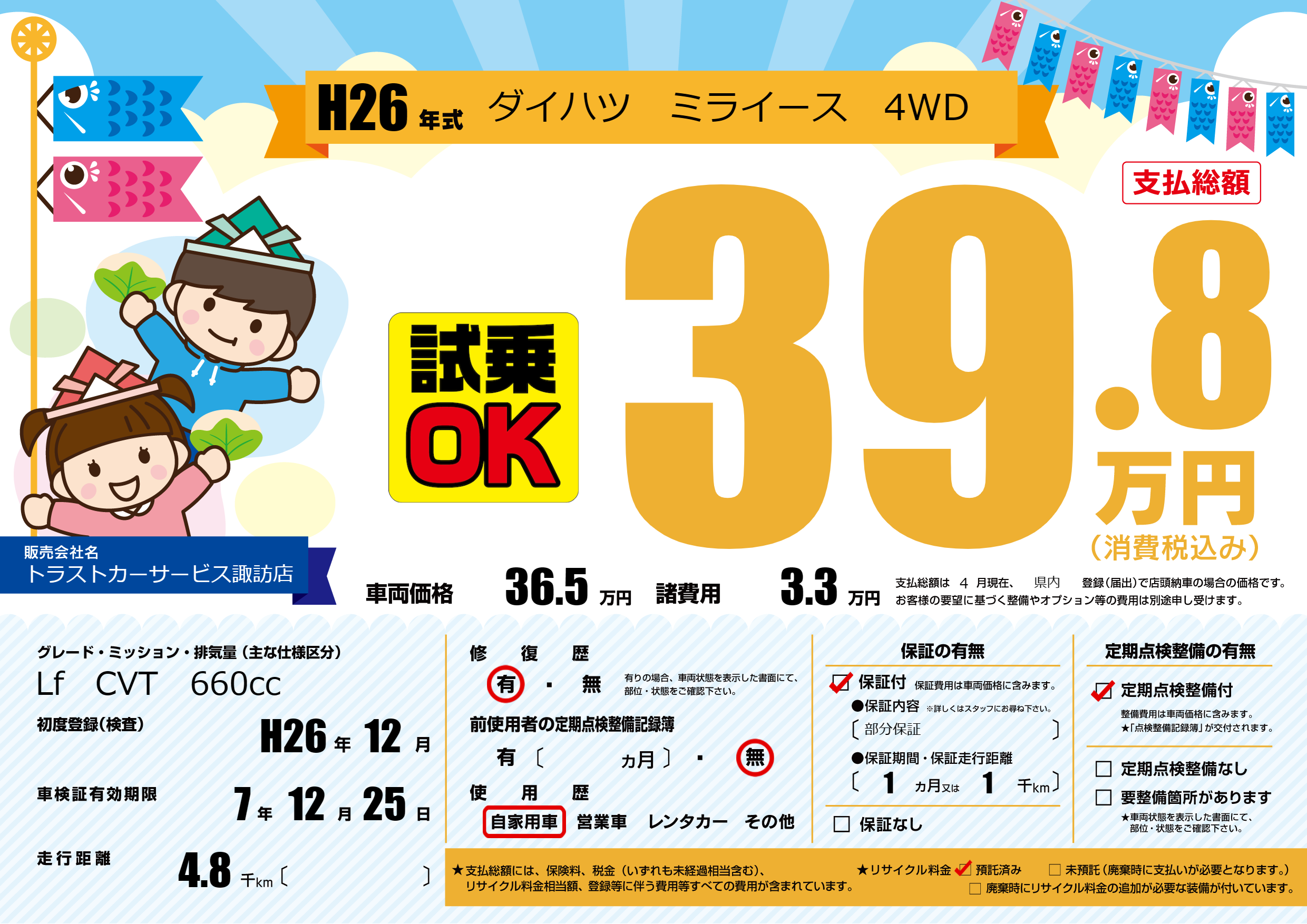 | 定期点検整備 | 定期点検整備あり | ||