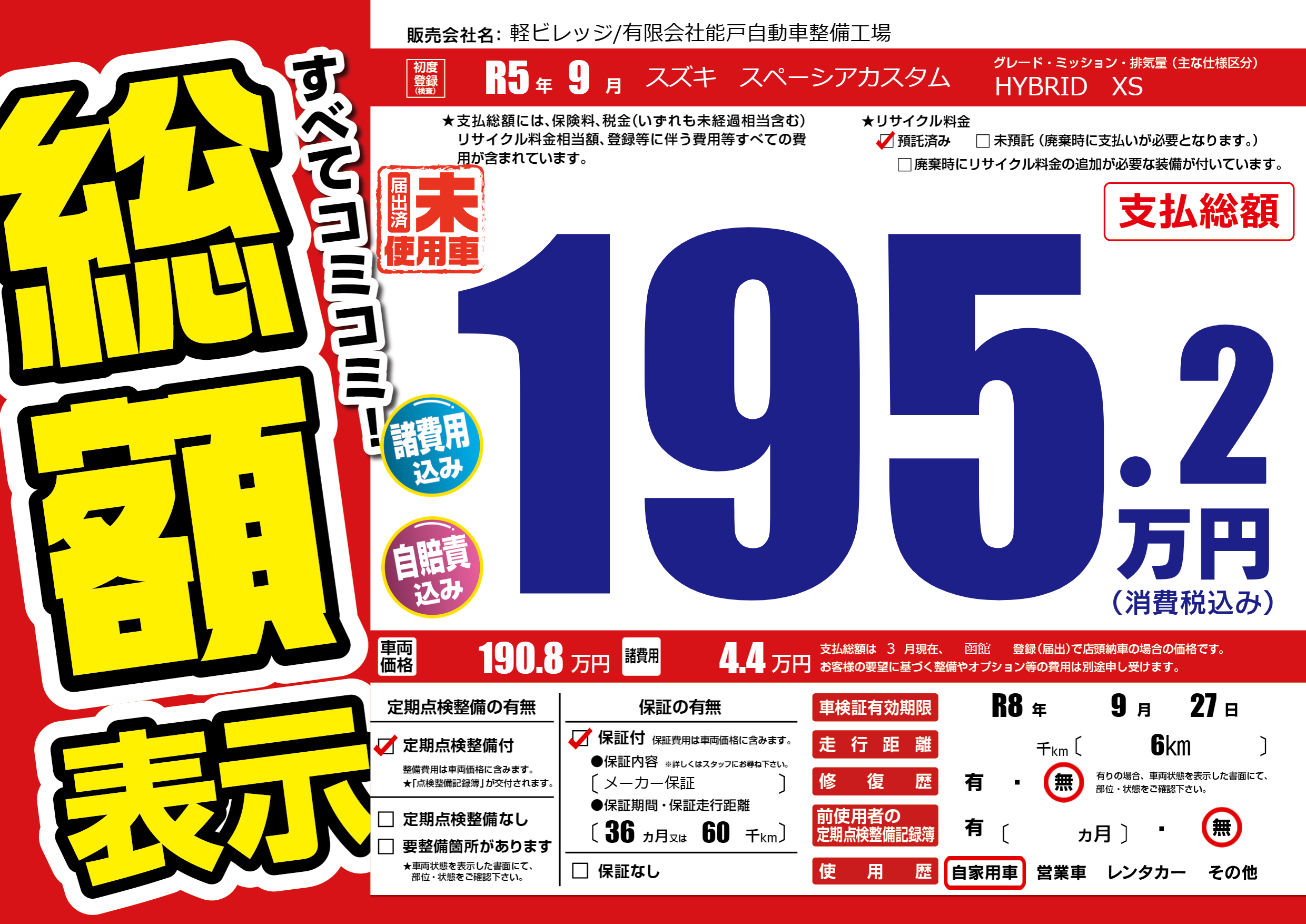 | 走行キロ | - | 初年度登録 | R5年9月 |