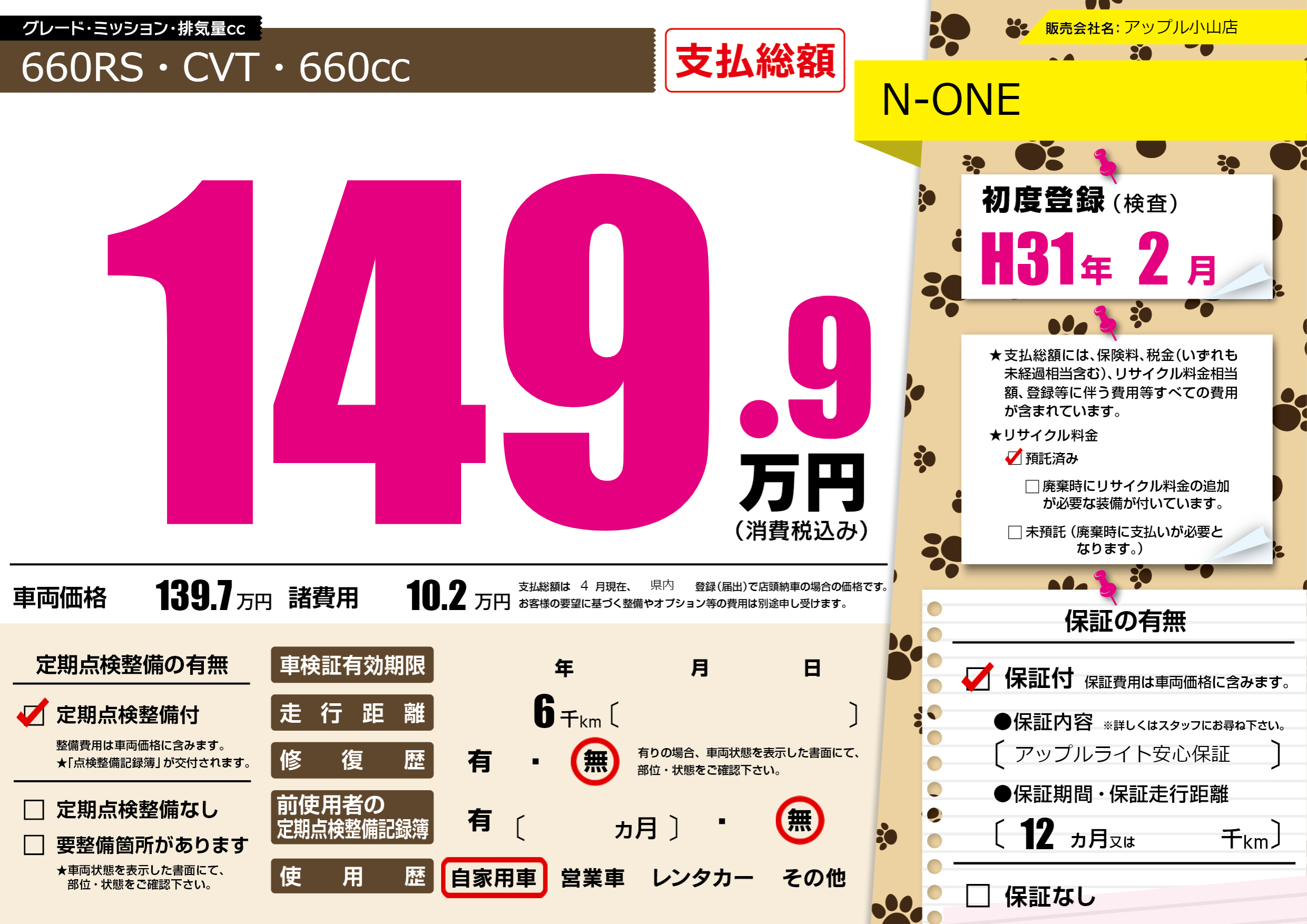 | 車名 | N-ONE | グレード ミッション 排気量 |