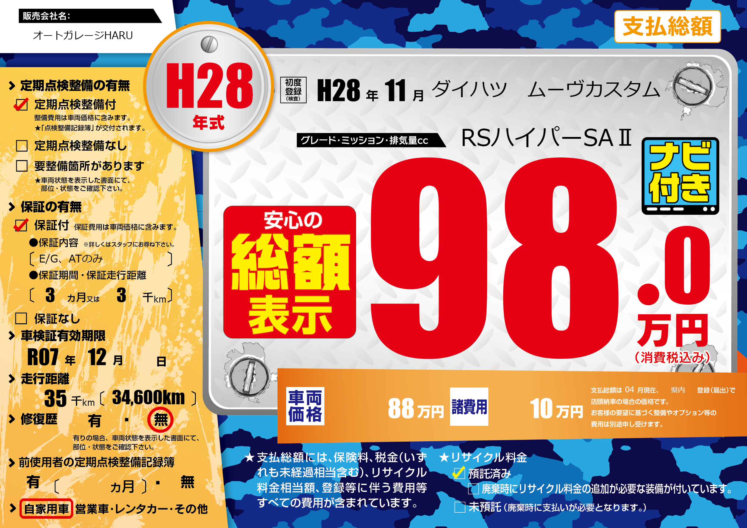 なし | 車検制限 | R07年12月---月 |