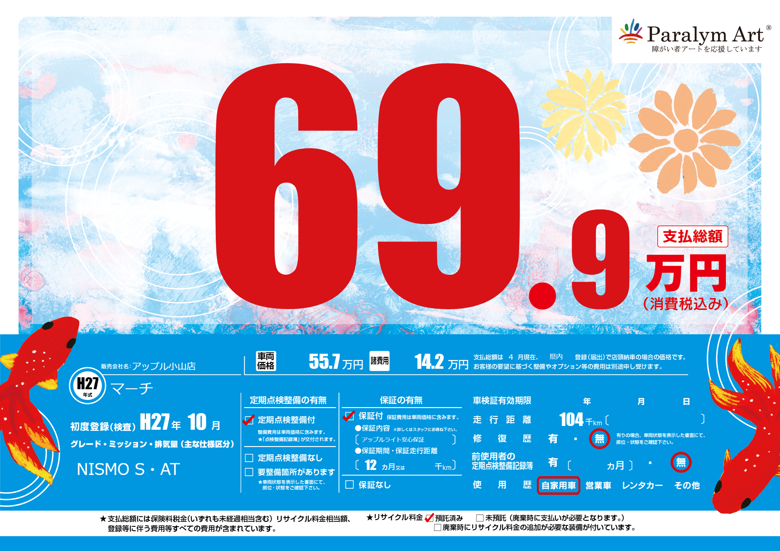 | 走行キロ | 10.4万km | 初年度登録 | H27年10月 |